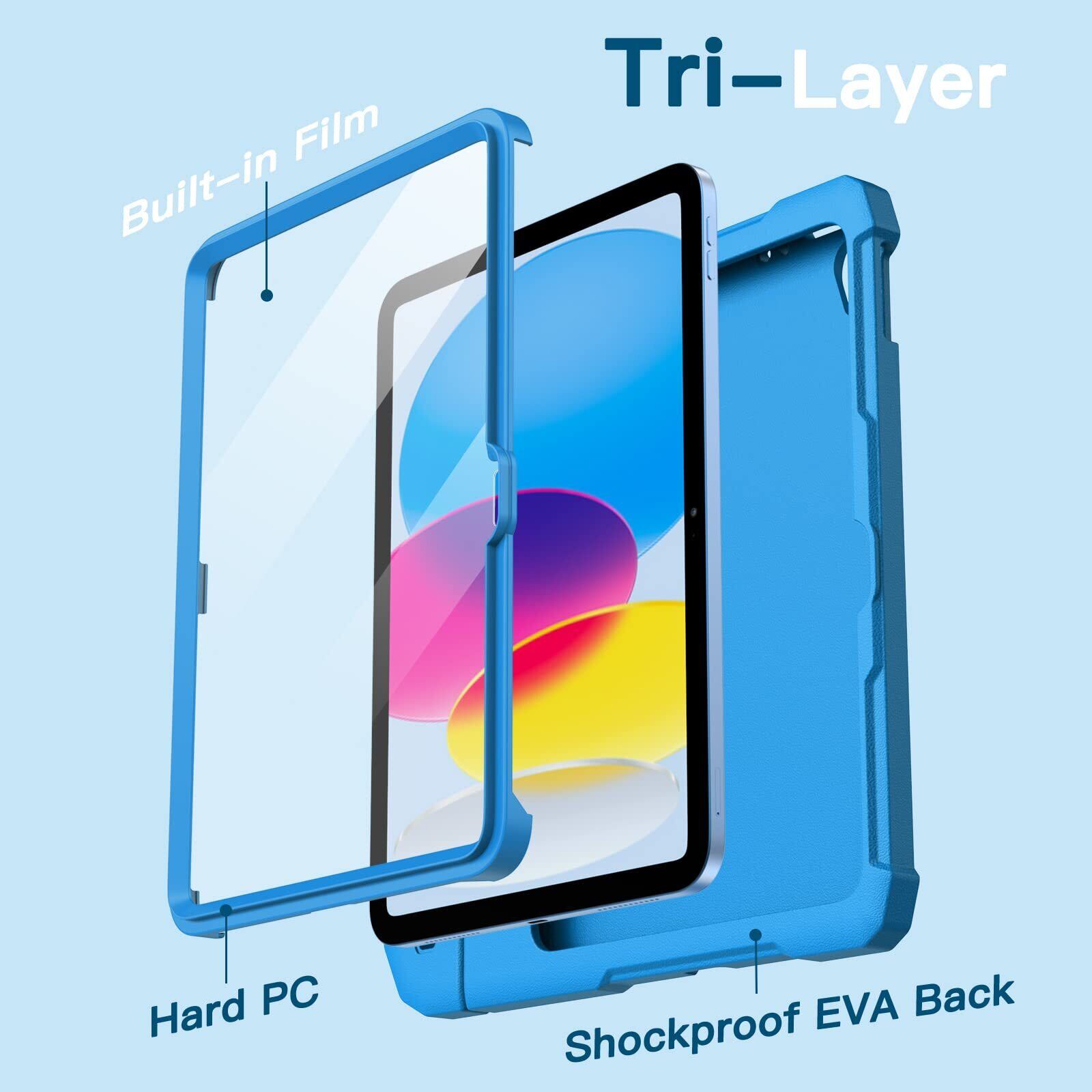 【在庫処分】JETech 子供用 iPad(A16)ケース 第11/10世代(2025/2022モデル)用液晶保護フィルム付き 耐衝撃 フルボディハンドルスタンド タブレット保護カバー (ブルー)
