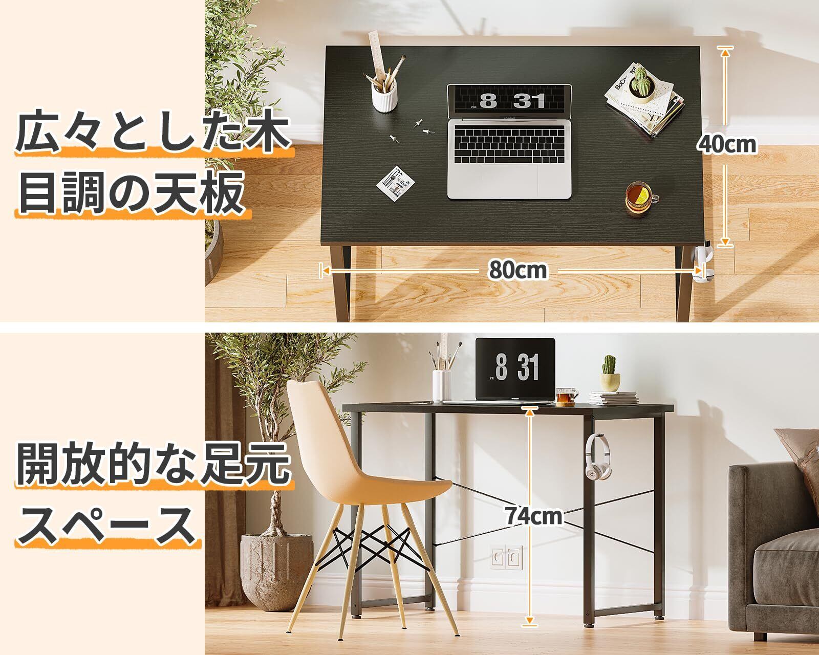 ODK デスク 机 pcデスク 幅80cm ゲーミングデスク パソコンデスク シンプルデスク 桌子 小さい computer desk 学習机 コンパクト 电脑桌 フック付き 在宅ワーク おしゃれ 組立簡単 黒い