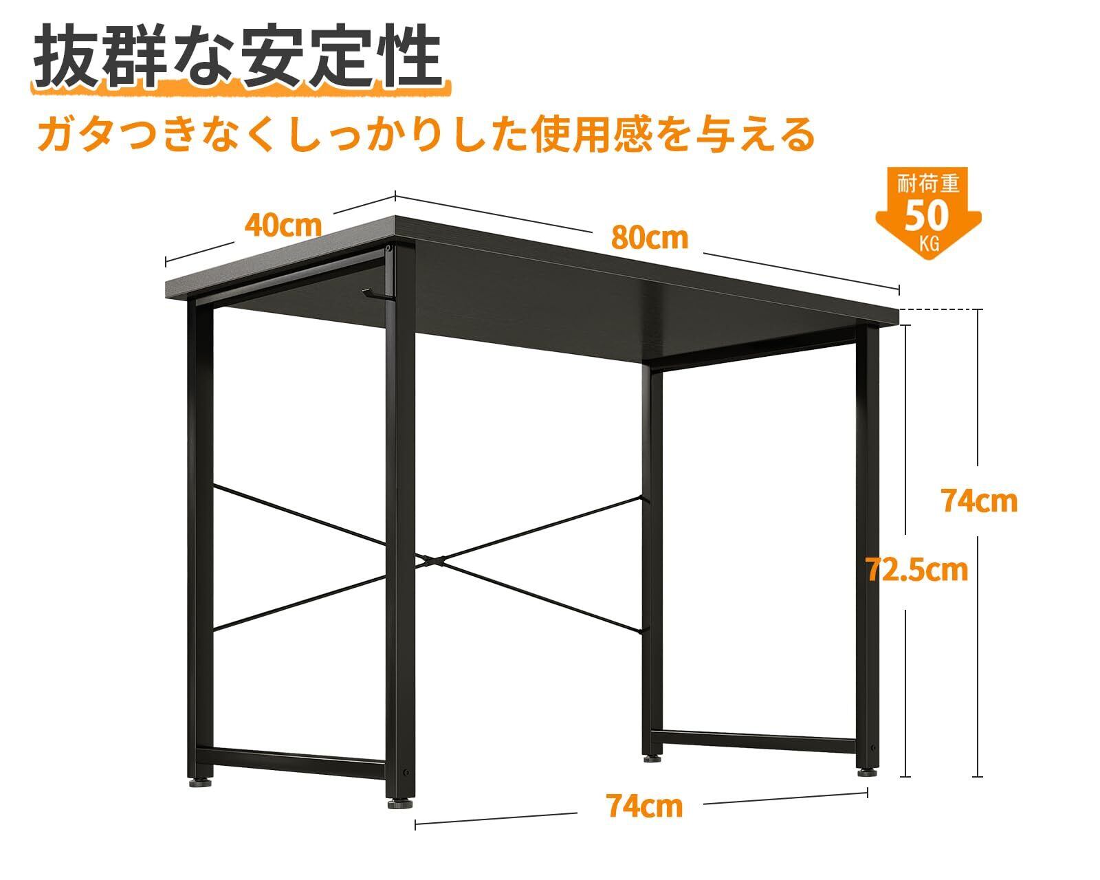 【商品仕様】シンプルでインテリアに馴染むおしゃれなデスクです。◆本体サイズ:幅80×奥行40×高さ74CM | 本体重量:5.7KG | 日本語組立説明書あり | お客様組立て品で、レンチも付属しており、別途で工具を買う必要がないです。