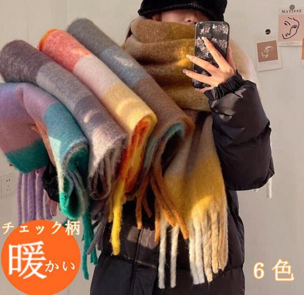 【在庫処分】[YAYUPLUS] マフラー レディース ストール チェック柄 虹 ロングマフラー カシミヤ風 防寒 暖かい フリンジ 大判 ポレロ 秋冬 軽量 クリスマス