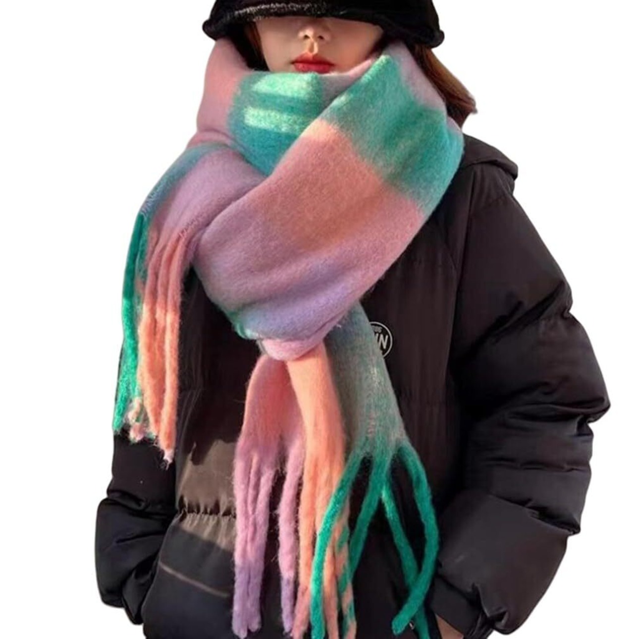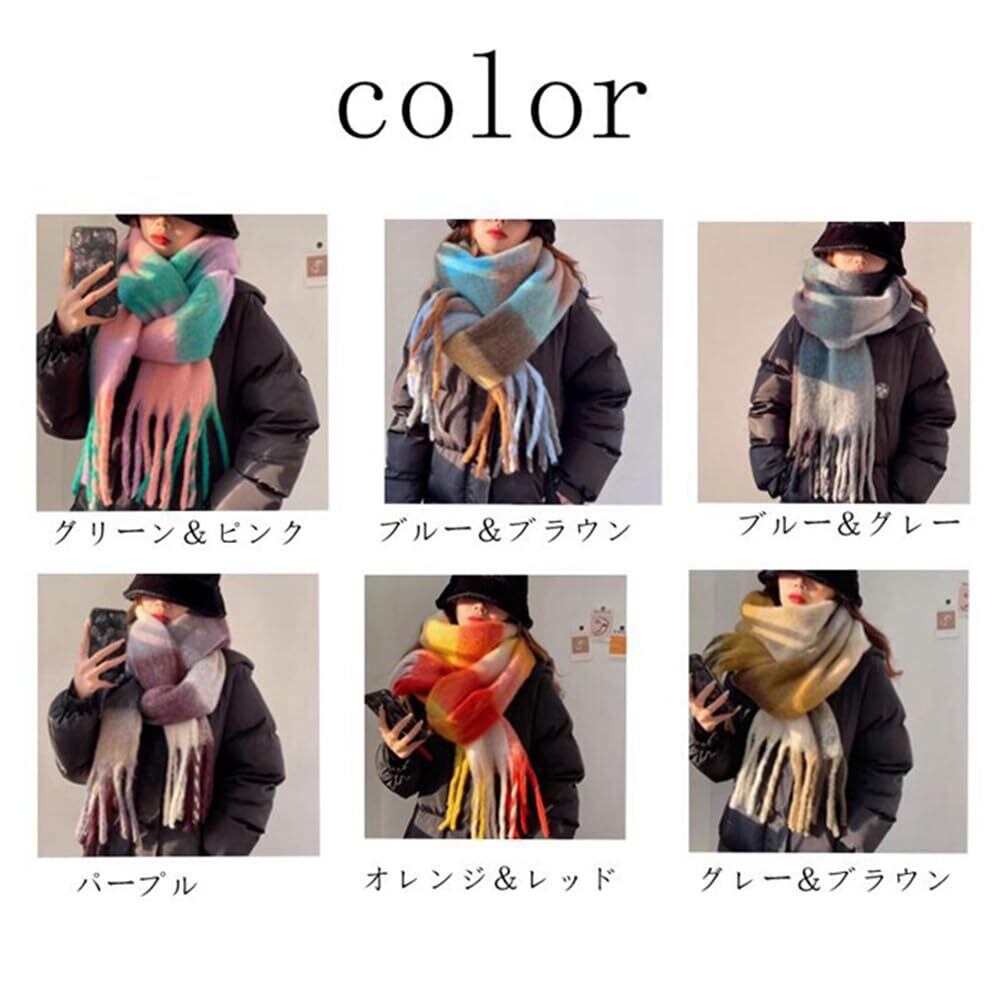 [YAYUPLUS] マフラー レディース ストール チェック柄 虹 ロングマフラー カシミヤ風 防寒 暖かい フリンジ 大判 ポレロ 秋冬 軽量 クリスマス