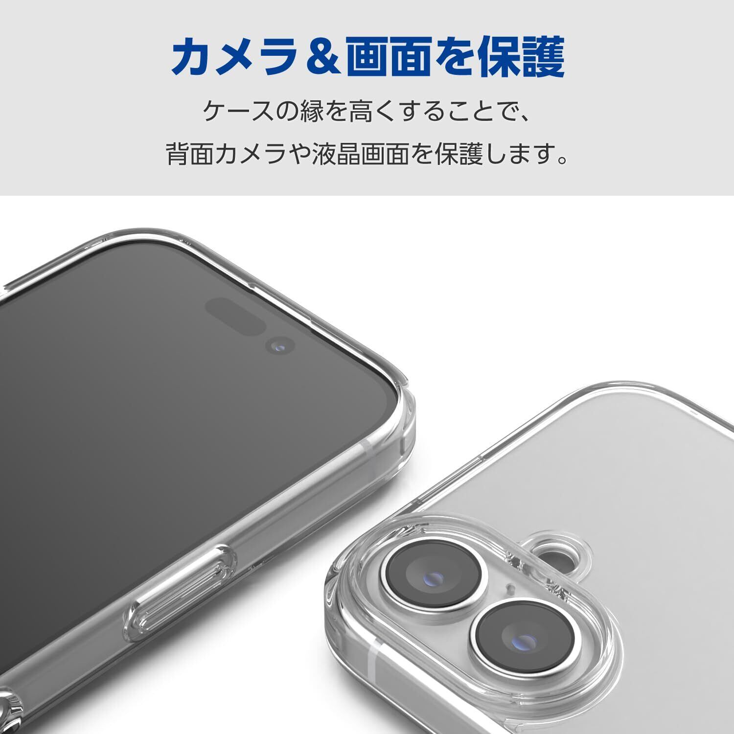 エレコム iPhone 16 ケース クリア 背面硬度5H ハイブリッド ポリカーボネート 黄変しにくい ショルダーストラップホール付き 4つ角エアークッション ワイヤレス充電対応 クリア PM-A24AHVCKSHCR