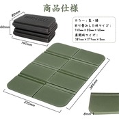 【商品仕様】座布団お得な2個セッ、重量:30g、カラー:黒・緑、折り畳みした時サイズ:14cm×8cm×6cm、展開時サイズ:38.5cm×27.5cm×0.8cm。