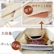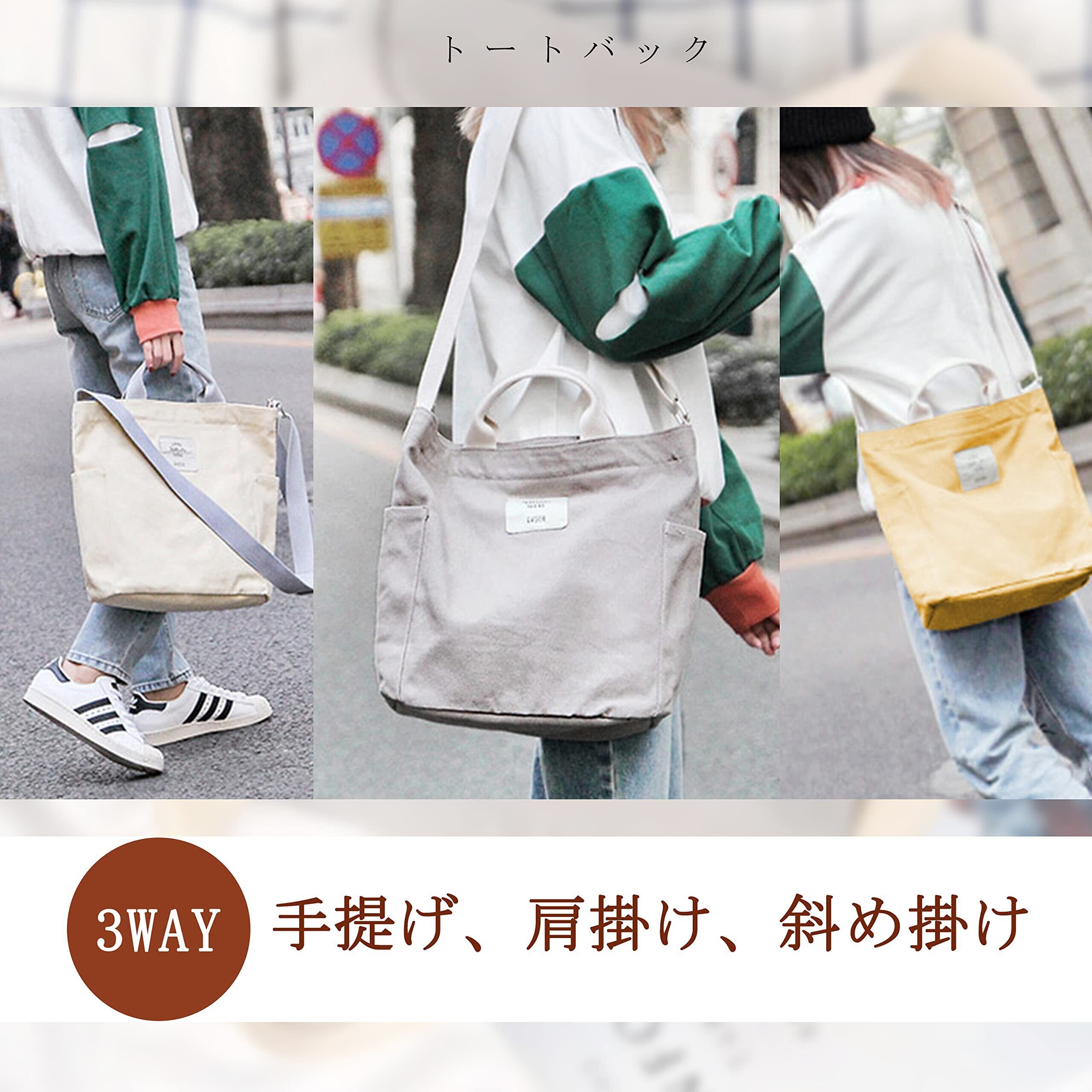 【3way掛けの人気キャンバスバッグ】 手持ちのトートバッグにも、肩掛けのトートバッグにも、斜め掛けのショルダーバッグにも使える、大人気のキャンバスバッグです。長さが調整できるショルダーベルトがついているので、お好みのスタイルに合わせて手提げ、肩掛け、斜め掛けと3パターンでお使いいただけます。 内側にポケットもついていて小物の整理に便利です