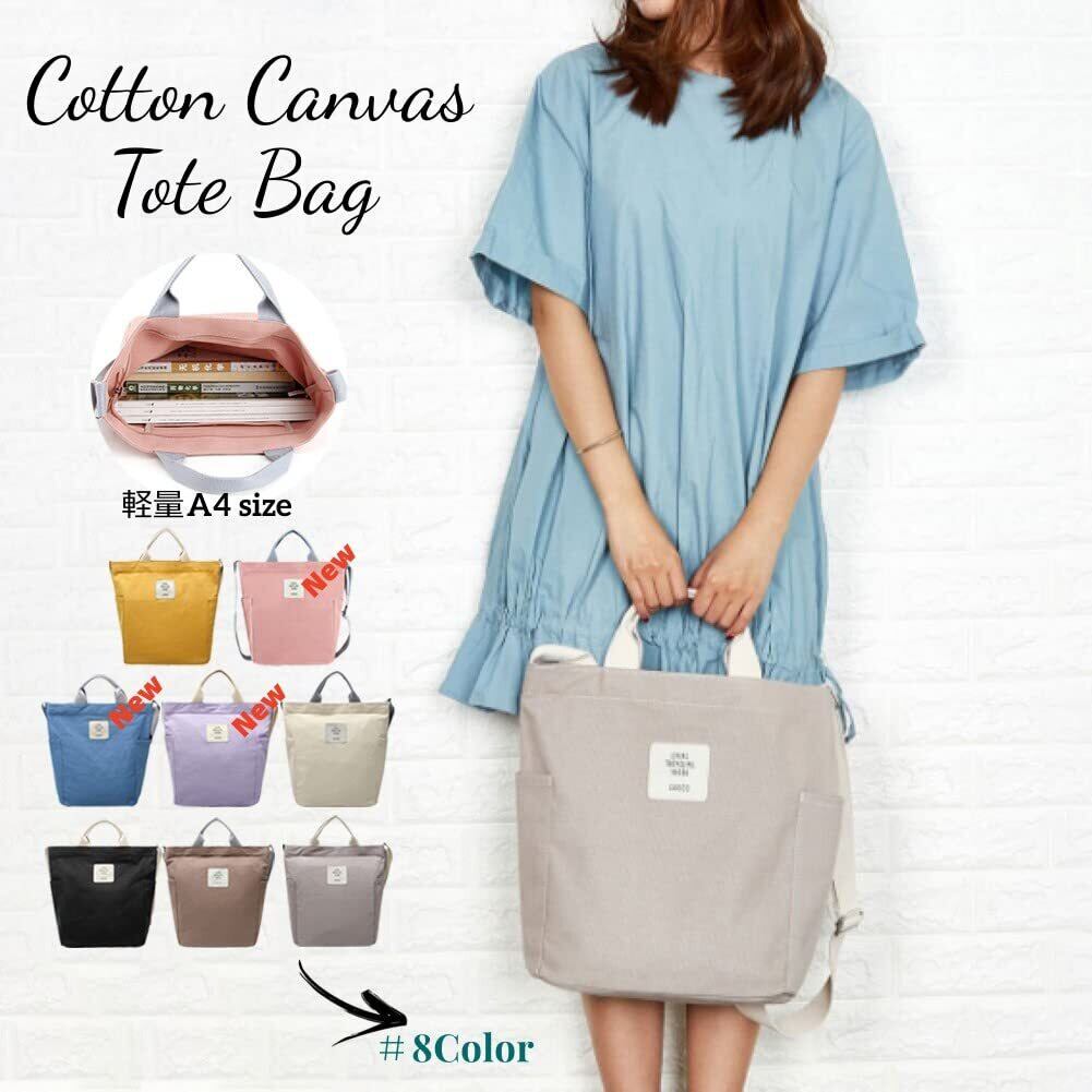 【仕様】メイン素材:キャンバス、サイズ:横28×高さ33×幅12cm 重さ:400g カラー:クリームホワイト、ブラック、イエロー、桃ピンク、グレー、カーキ、ブルー、パープル 仕様:肩ひもの調節可能、ファスナー開閉