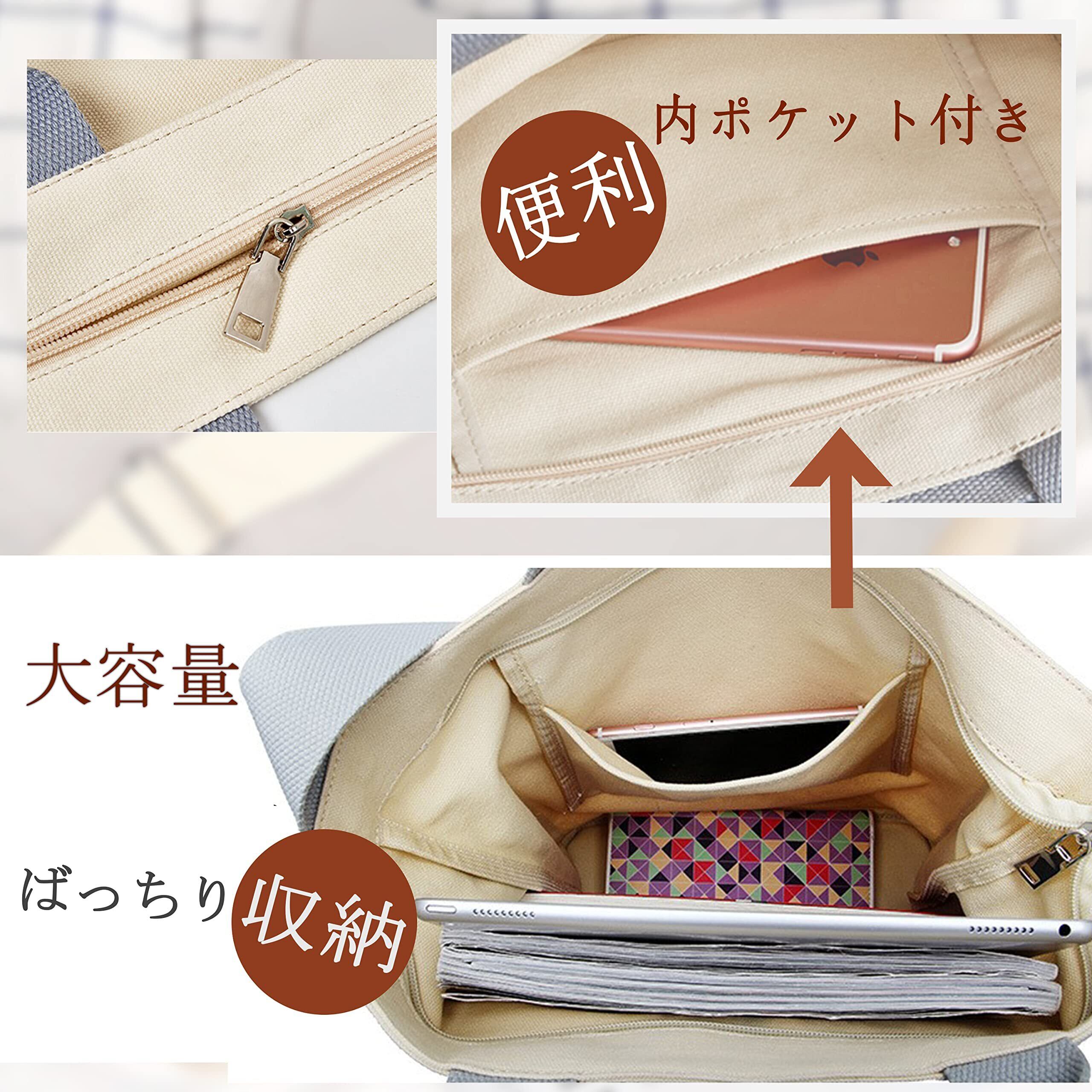 【軽量&大容量】:キャンバス素材を使用しているため、軽量で持ち運びが楽です。それでも大容量のデザインなので、A4サイズの書類やノートパソコンも楽々収納できます。学校や仕事、旅行など多様なシーンに対応します。