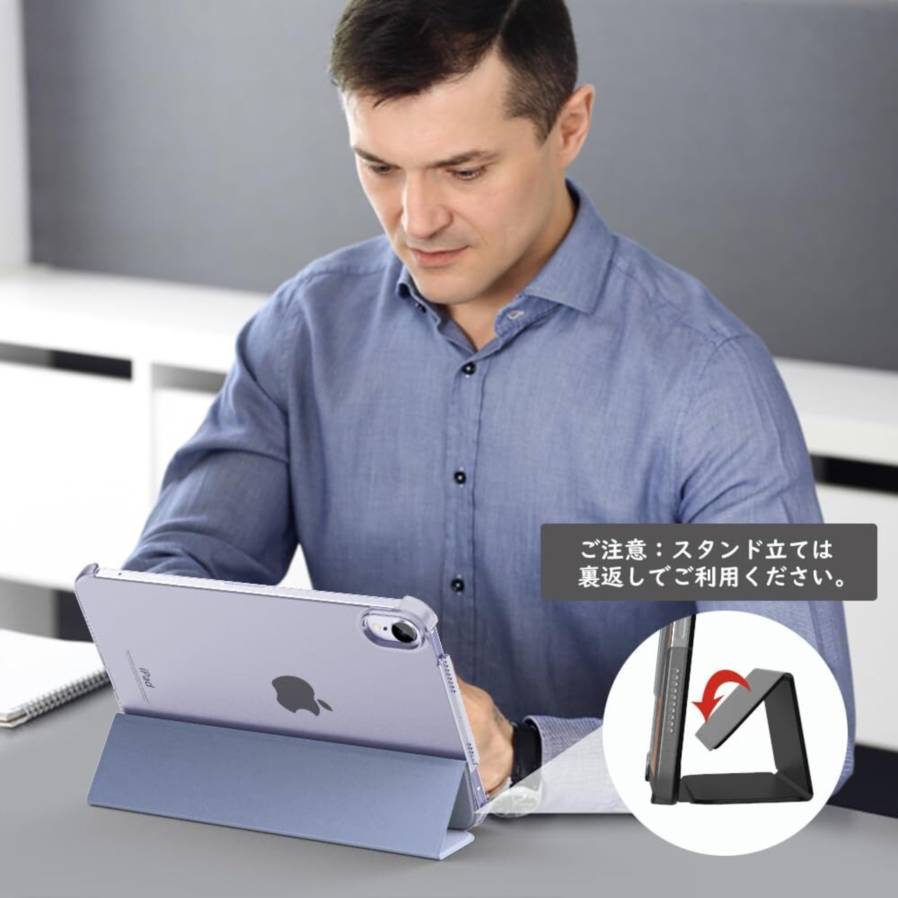 MoKo iPad mini7 ケース (A17 Pro、2024) / iPad mini 6 ケース iPad mini 第7/6世代 8.3インチ 2024/2021 半透明 オートスリープ機能 PencilPro/第2世代ワイヤレス充電に対応 三つ折りスタンド 高級PUレザー 裏地マイクロファイバー 軽量 薄型 傷防止 スマートケース GrayPurple