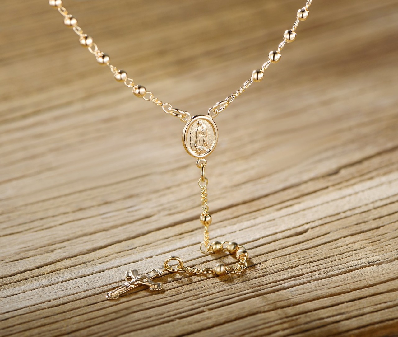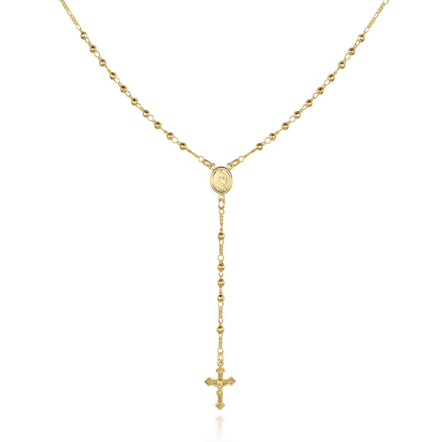 【新着商品】Barzel 18K 金メッキ 聖母マリア ロザリオ ビーズ クロス ネックレス - ブラジル製