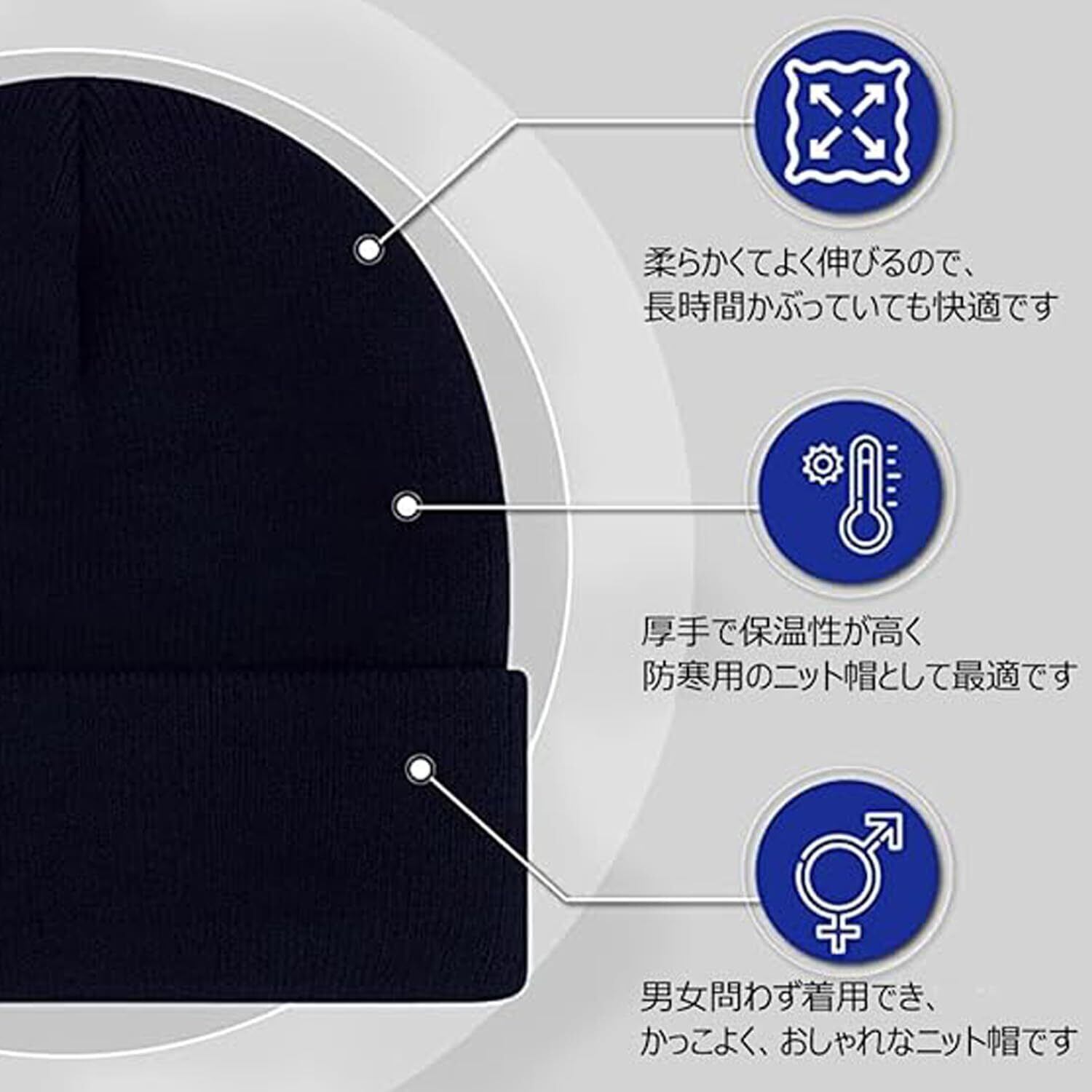 【厚手のリブ編みニット】このニット帽はアクリルと繊維で構成されています。厚手で保温性が高く、寒い季節に最適です。風をしっかり防ぎながらも蒸れにくいため、長時間快適にご使用いただけます。