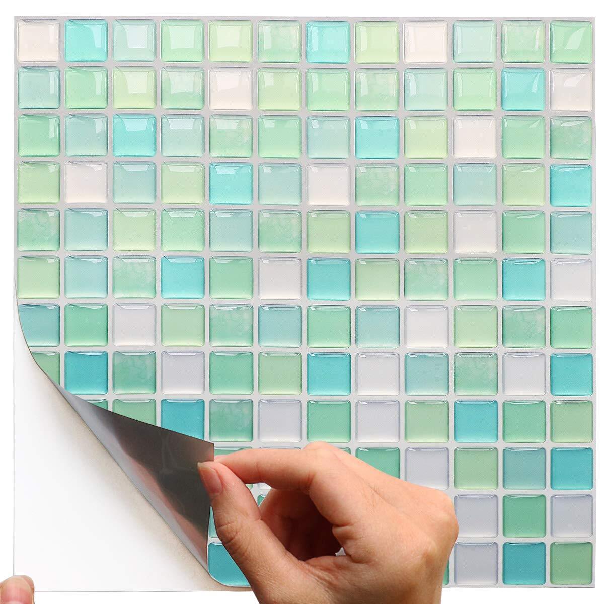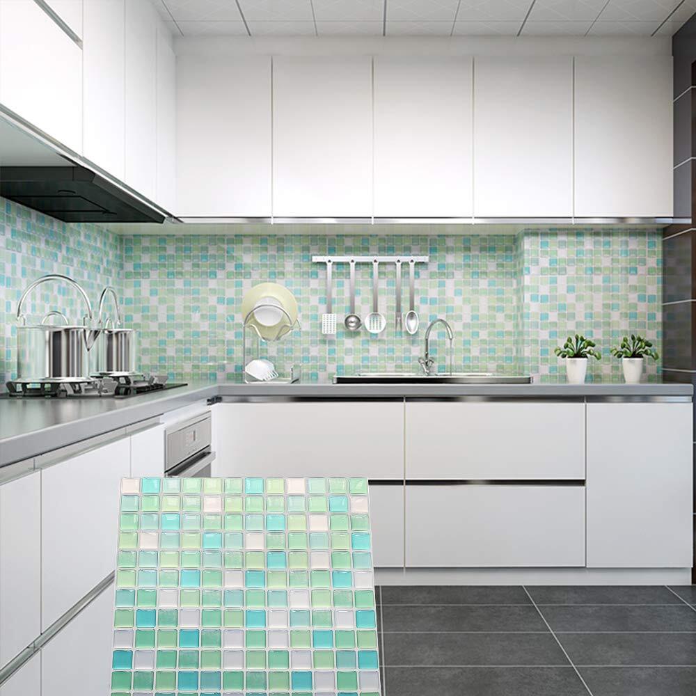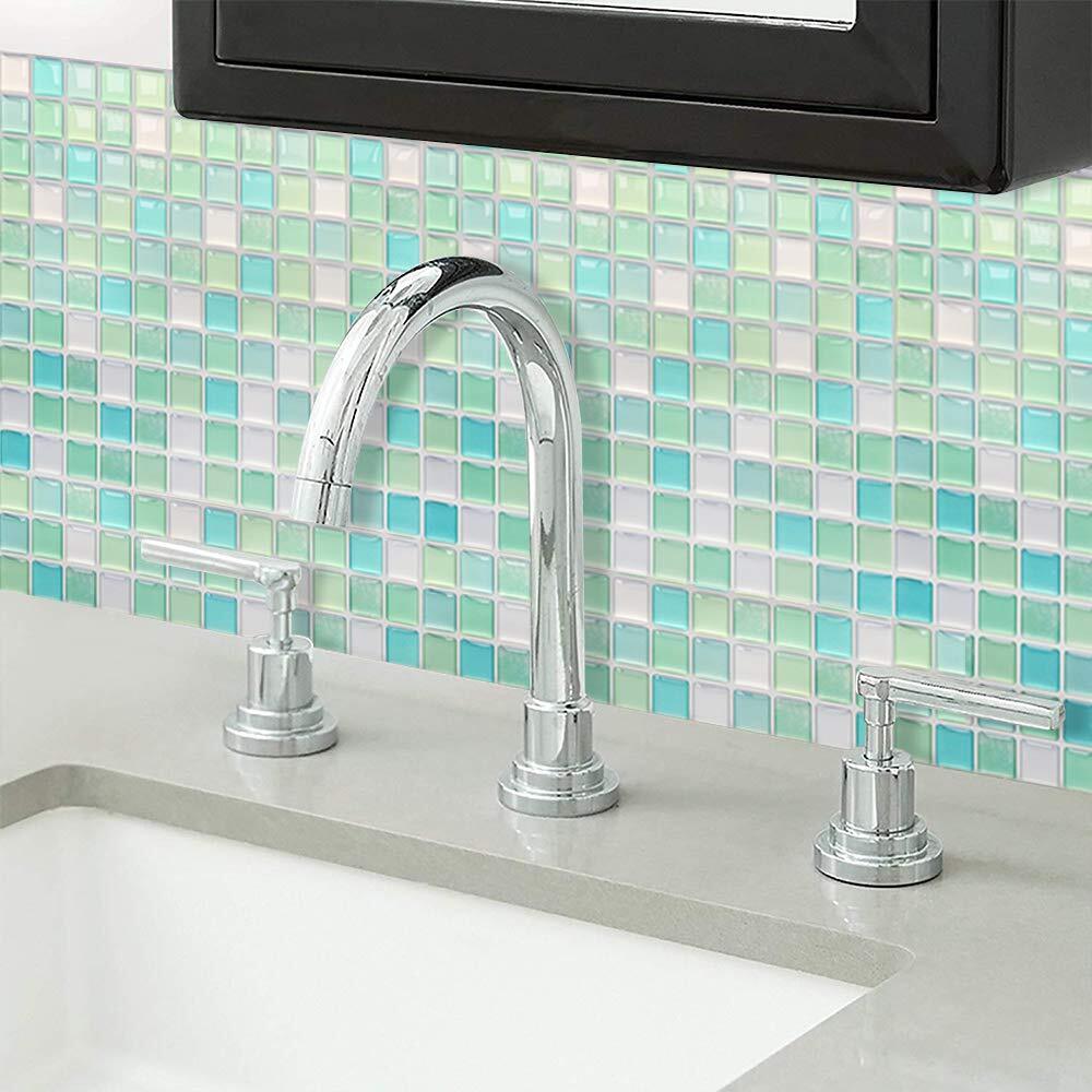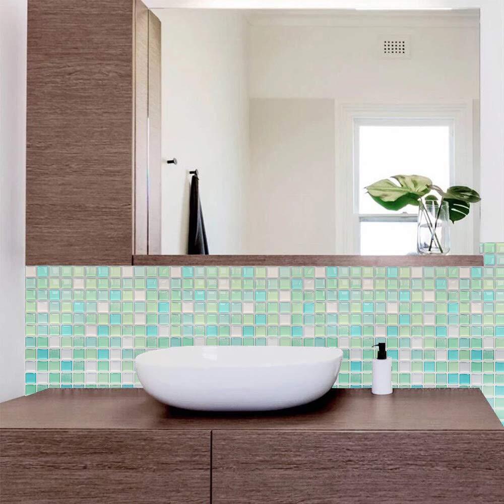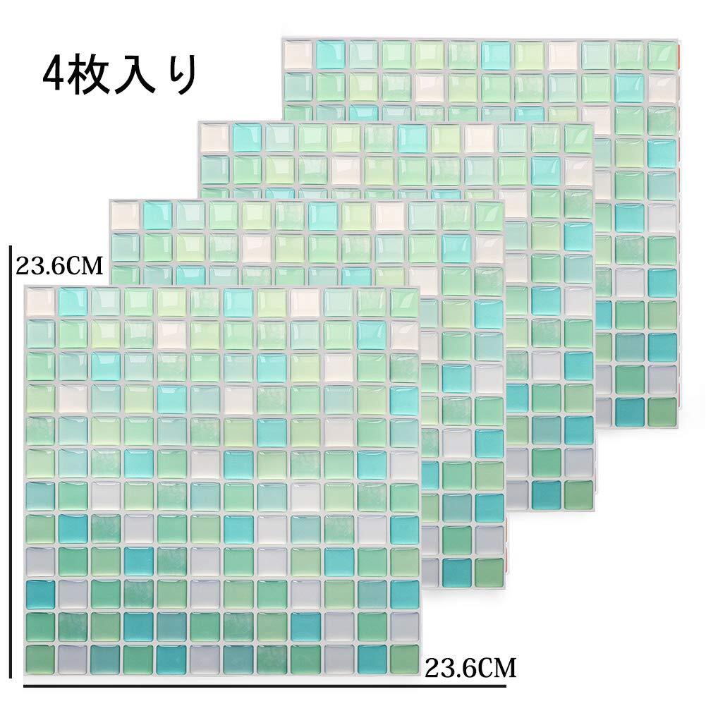 Yoilline タイルシール ブルー 賃貸 ウォールステッカー 耐熱 防水 タイル 3D シール 簡単取付 モザイクタイルシール キッチン 洗面所 トイレ 北欧 DIY ステッカー 壁紙シール 4枚 色11