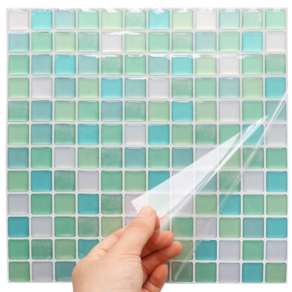 【人気商品】Yoilline タイルシール ブルー 賃貸 ウォールステッカー 耐熱 防水 タイル 3D シール 簡単取付 モザイクタイルシール キッチン 洗面所 トイレ 北欧 DIY ステッカー 壁紙シール 4枚 色11