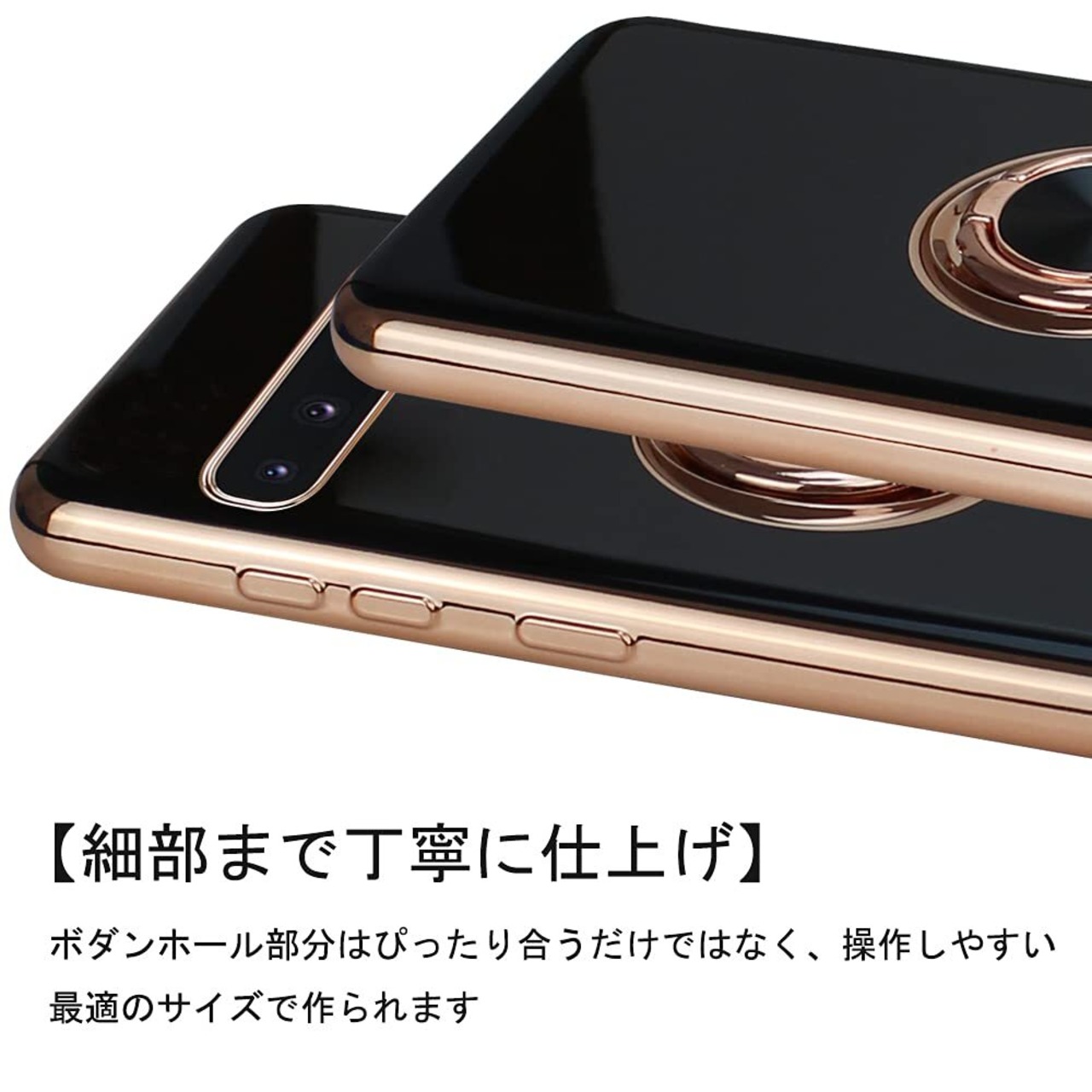 Samsung Galaxy S10 Plus ケース GalaxyS10 Plus ケース リング付き メッキ加工 レンズ保護 tpu ソフト ストラップホール付き 耐衝撃 スリム おしゃれ スマホケース 携帯カバー ギャラクシーS10 Plus 用 カバー (Galaxy S10 Plus, ブラック)