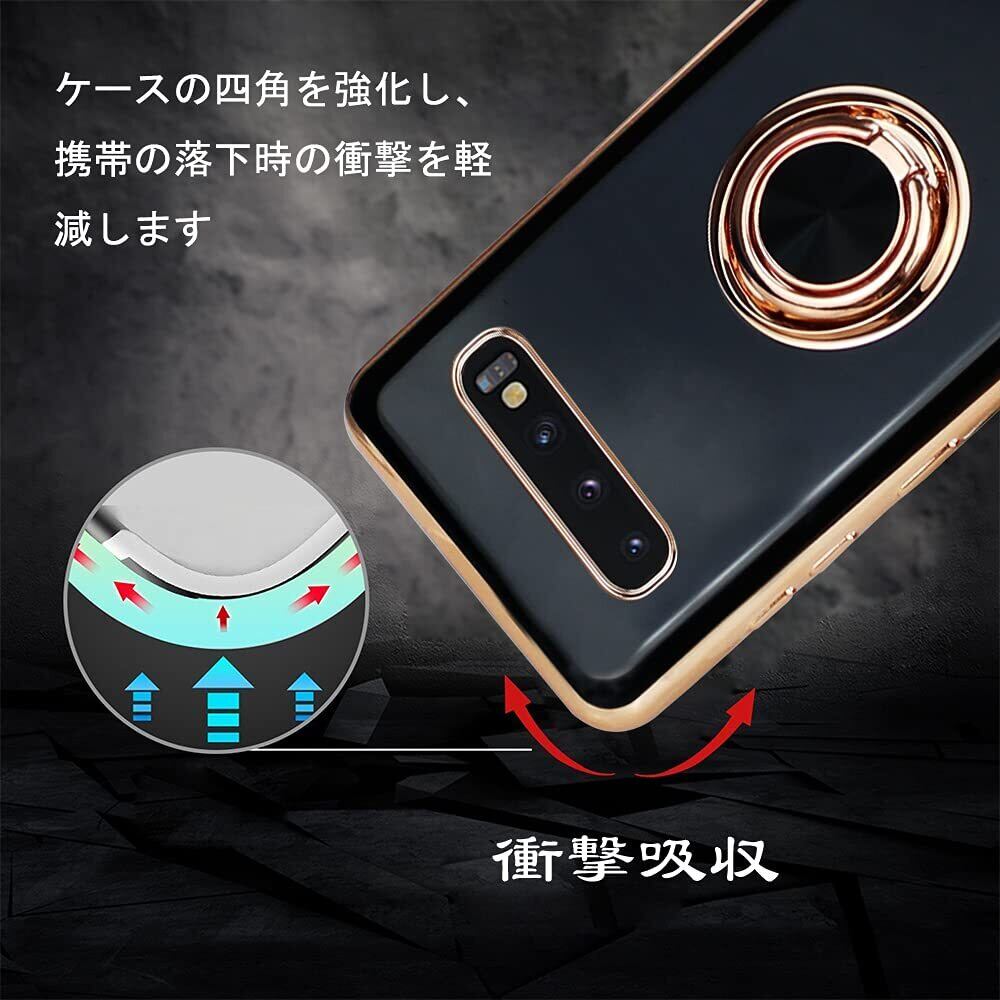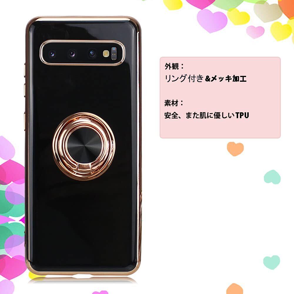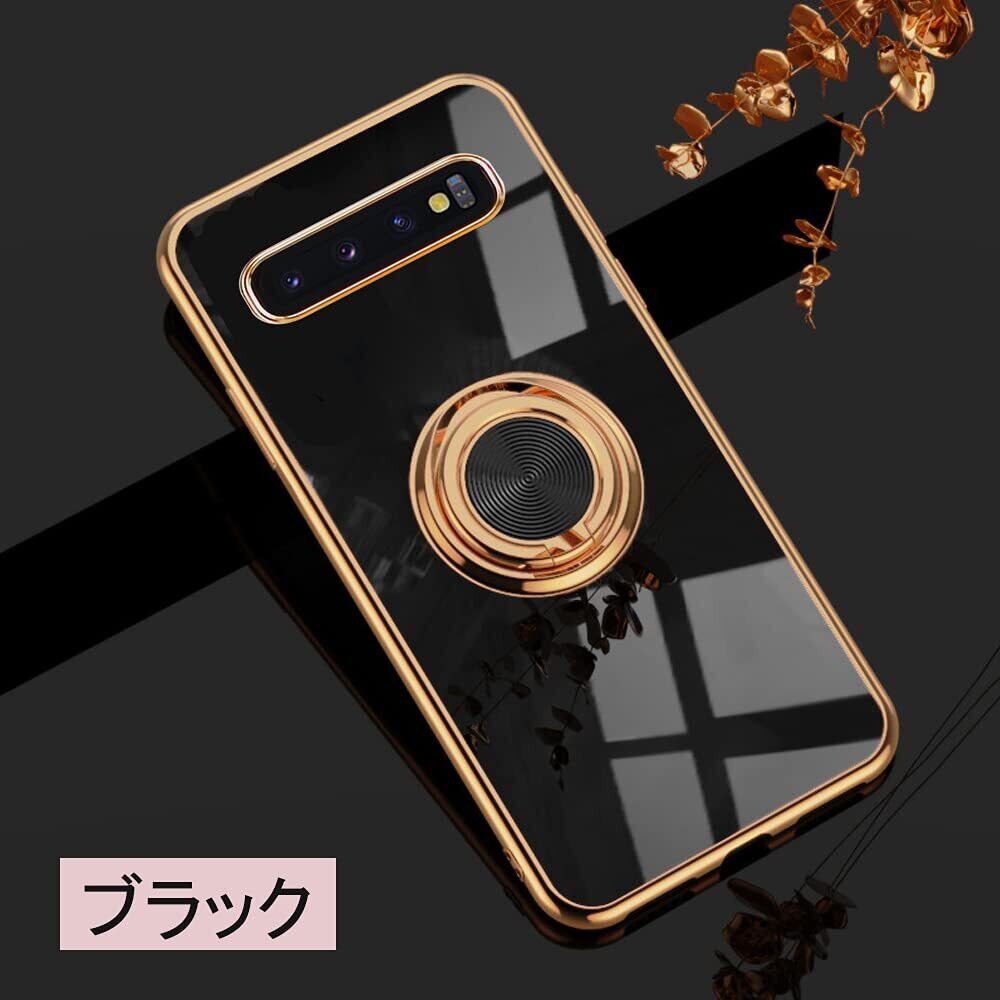 【数量限定】Samsung Galaxy S10 Plus ケース GalaxyS10 Plus ケース リング付き メッキ加工 レンズ保護 tpu ソフト ストラップホール付き 耐衝撃 スリム おしゃれ スマホケース 携帯カバー ギャラクシーS10 Plus 用 カバー (Galaxy S10 Plus, ブラック)