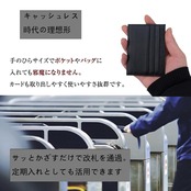 【シーンの使用】本体はとても薄い約0.3cmの設計で、カード6枚を詰めていても厚さが僅かの1cmです。通勤・旅行・日常生活の様々なシーンに対応します。一切の無駄を排除したとてもシンプルなカードケースです。手のひらに収まる小さなサイズに6枚のカードと紙幣等が入れられます。現代のキャッシュレス社会や持ち物は最小限に抑えたいミニマリストにぴったりです。サブの財布・カードケースとしてはもちろん、メインとしてもキャッシュレスなライフスタイルなら十分な機能性です。