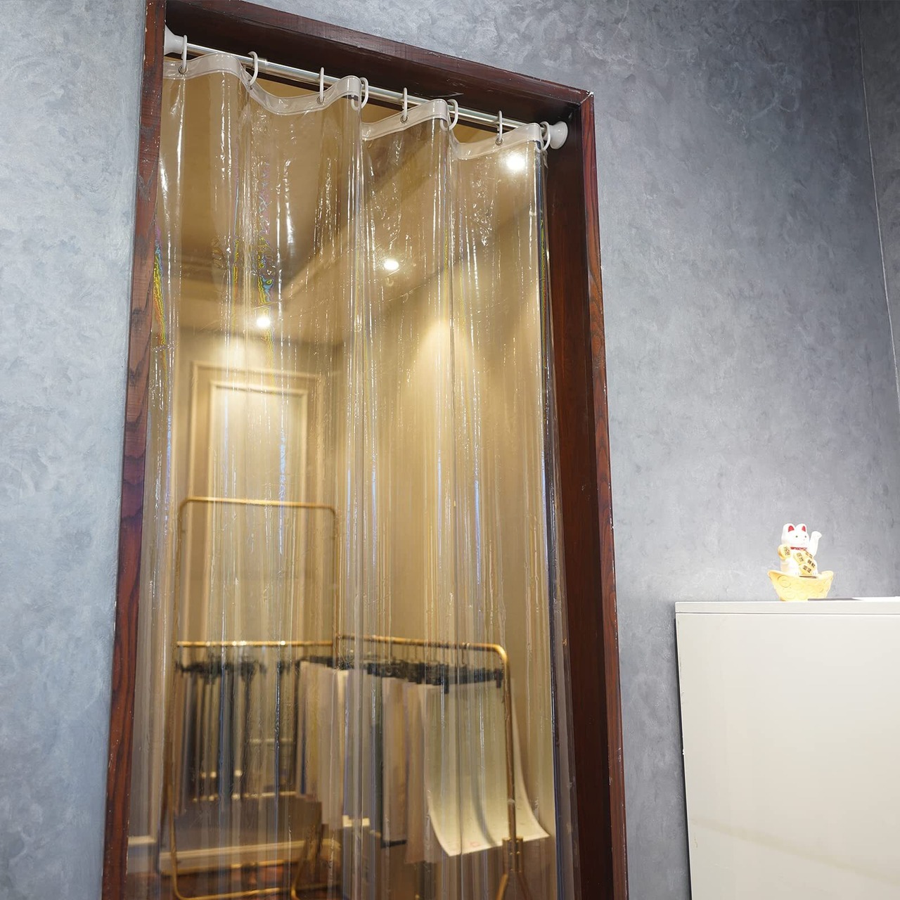 【耐久性・保温性】断熱性がよく、部屋暖房ロス抑制、保温効果があり、寒い冬でも安心できるバスカーテン。ハトメが防錆びの銅製加工で変形しにくく、丈夫で長持ちできます。
