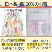 【名前タグ】巾着袋には名前を記入できるタグが付いており、紛失の心配がありません。