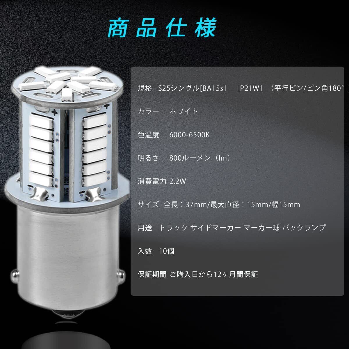 HooMoo S25 LED シングル 24V レッド トラック サイドマーカー マーカー球 バックランプ 39連 G18 (BA15s)P21W ピン角180° 防水 爆光 バス トラック ダンプ 船舶 重機 10個入り