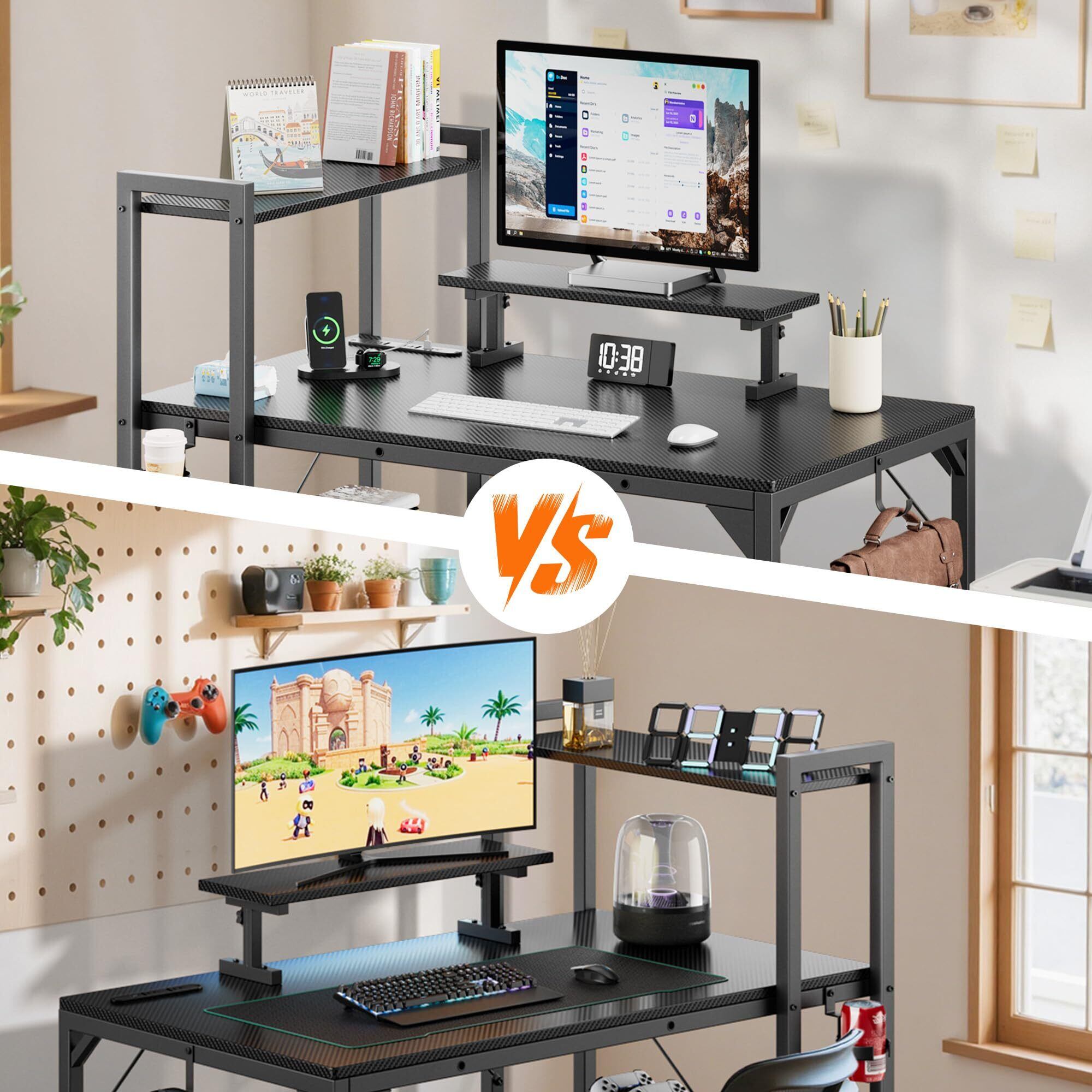 ゲーミングデスク コンセント付き 幅107CM 棚付き 収納 モニター台付き パソコンデスク pcデスク オフィスデスク 学習机 作業机 computer desk 电竞桌 おしゃれ 組立簡単 黒