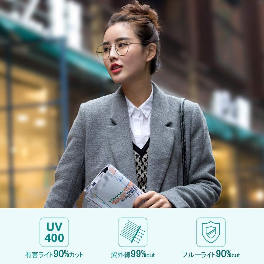 【uvカット】UVカットレンズが付いた紫外線対策メガネで、紫外線カット率は99%になる。肌を老化させ、シミ、黄斑、こじわの原因と言われている紫外線とUVをカットできる。ブルーライトカットメガネはもちろん、紫外線カットメガネとしてもお勧めます。