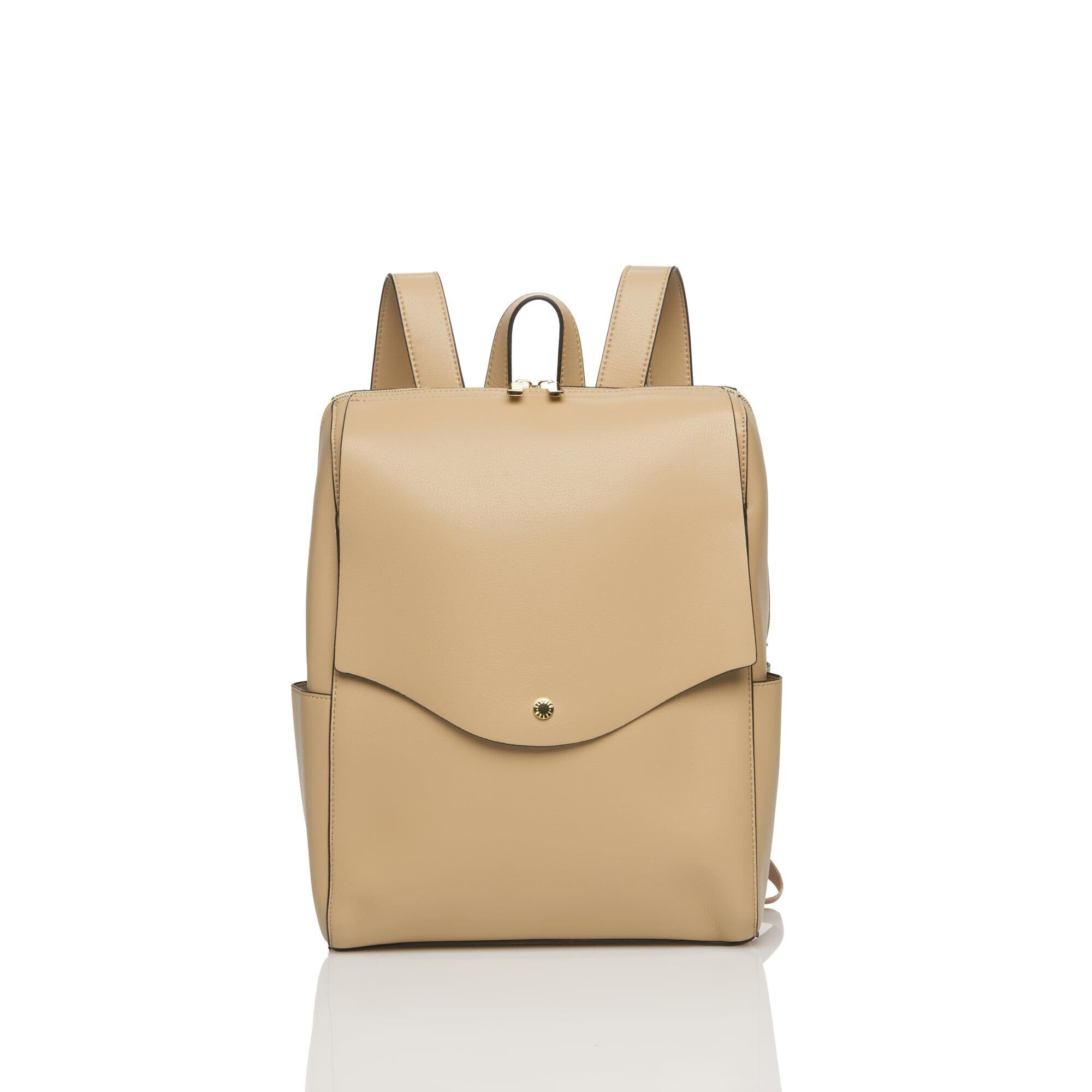 かるいかばんがリニューアル!シルバーパーツにブラウンのコバで洗練された印象に。「え、かるい!」と、思わず声をあげてしまう軽量感。高級感と落ち着きがあるのでカジュアルコーデにこのバッグを合わせるだけで一気にきちんと感が出ます。重くて敬遠していた合皮のリュックも、これなら可愛いくラクラク!ほどよいハリとやわらかさがあり、本革のようなしっとりとした手触りです。