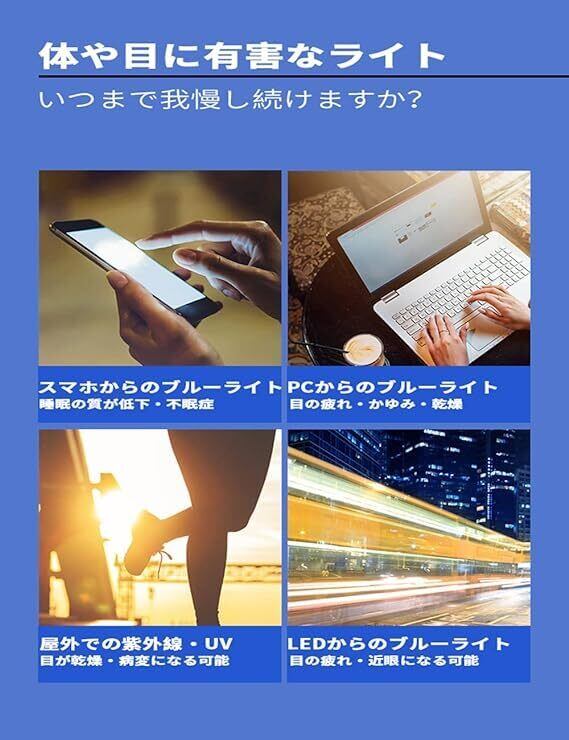 紫外線*UVカット : UVカットレンズが付いた紫外線対策メガネで、紫外線カット率は99%になる。肌を老化させ、シミ、黄斑、こじわの原因と言われている紫外線とUVをカットできる。ブルーライトカット メガネはもちろん、紫外線カットメガネとしてもお勧めます。