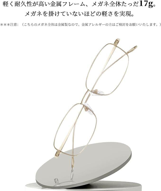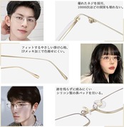 超軽量17g: ブルーライトカット メガネのフレームは金属製だが、レンズを含めて全体わずか17gであり、掛けていることを忘れるほどの軽さが普段に掛けていない方も気にならない。日本人の顔にフィットするように設計されており、長時間使用しても耳や鼻筋が痛くなりにくいタイプ。