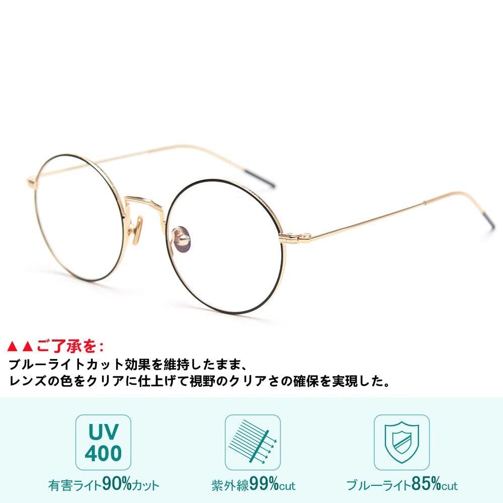 Dollger ブルーライトカットメガネ だてめがね メンズ オシャレ 伊達メガネ 18g 丸メガネ uvカットメガネ 度なし メガネ