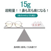 【伊達メガネ 超軽量】わずかな15gでメガネをかけているのを忘れるほどのフィット感!細いフレームでは長時間の着用でも耳やこめかみが痛くなりにくいタイプだ。クリアレンズに近い透明で度なしのレンズを採用してブルーライトカットという機能を持っていながら高い光透過率を確保できる。