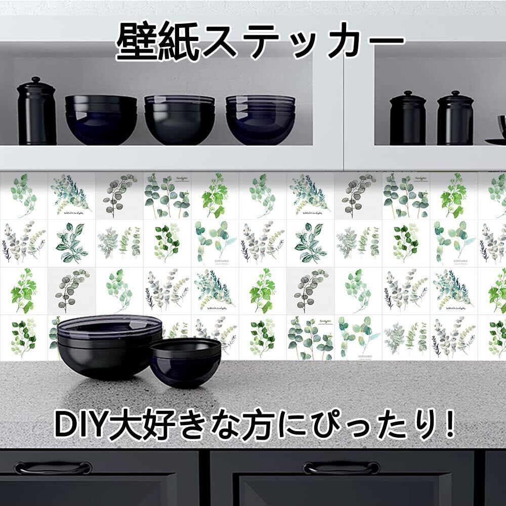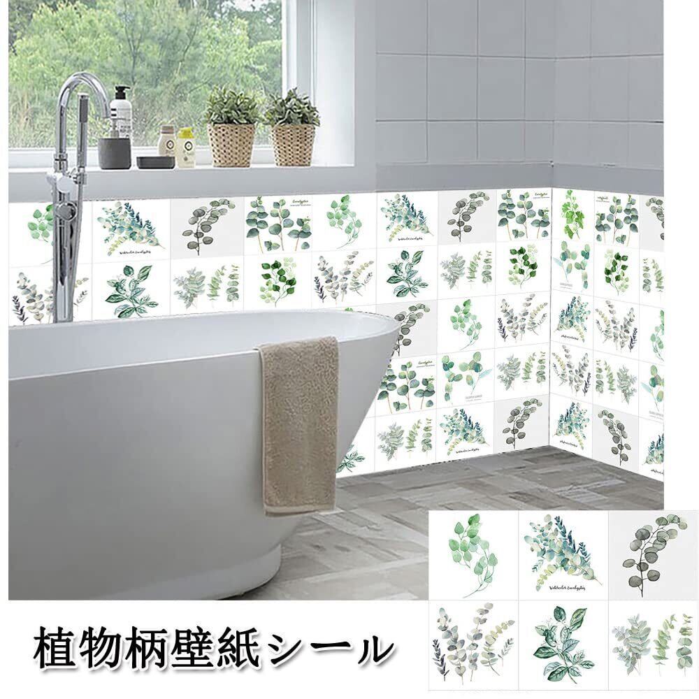 【数量限定】Hitasi モザイクタイルシート リメイクウォールステッカー 防水断熱 20枚セット 可愛い 北欧 植物柄 緑の葉 PVC製 15cm*15cm 20枚セット DIY トイレ洗面所キッチン タイル補修 賃貸対応