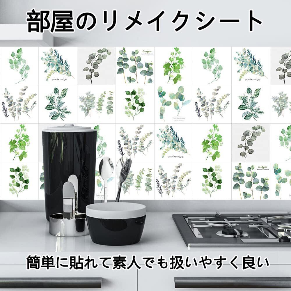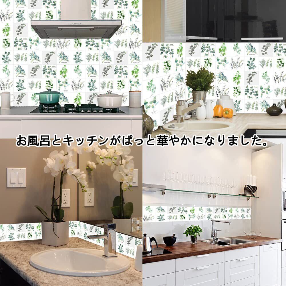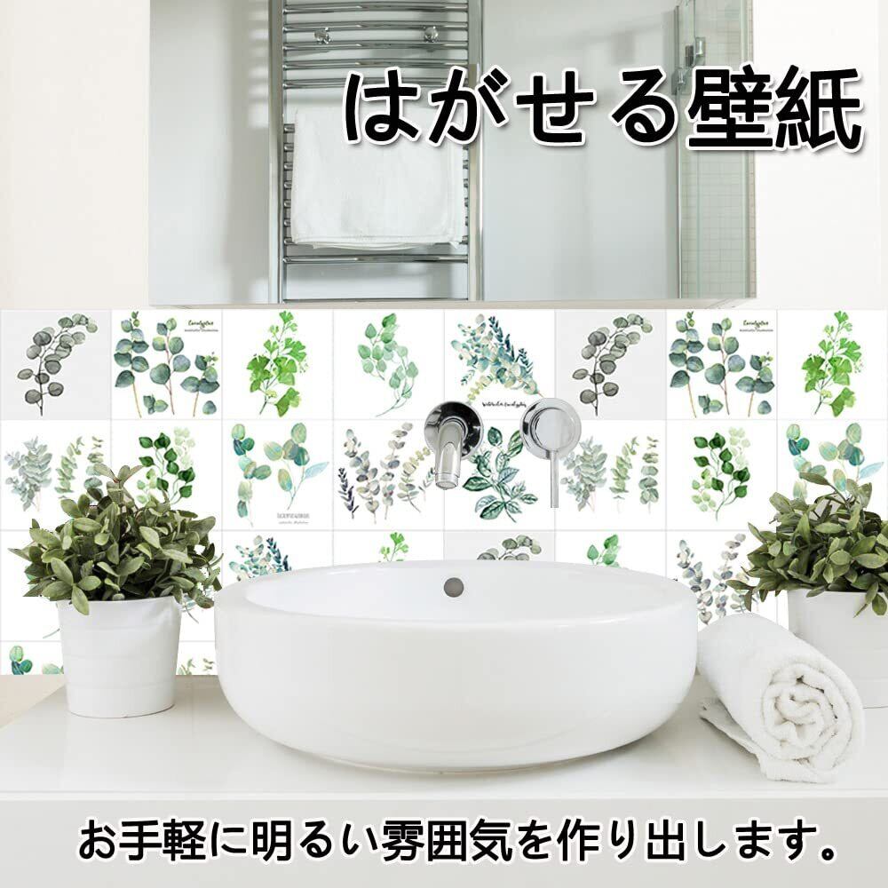 Hitasi モザイクタイルシート リメイクウォールステッカー 防水断熱 20枚セット 可愛い 北欧 植物柄 緑の葉 PVC製 15cm*15cm 20枚セット DIY トイレ洗面所キッチン タイル補修 賃貸対応