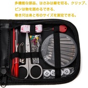 【裁縫セット内容】収納バック*1、縫い糸*12色、ぬい針ケース*1(ぬい針30個)、安全ピン*2、予備ボタン*4、パール針*10、糸通し*1、リッパー*1、メジャー*1、編み針*1、はさみ*1,10種類のツールがありますので、ほとんどの裁縫作業ができます。