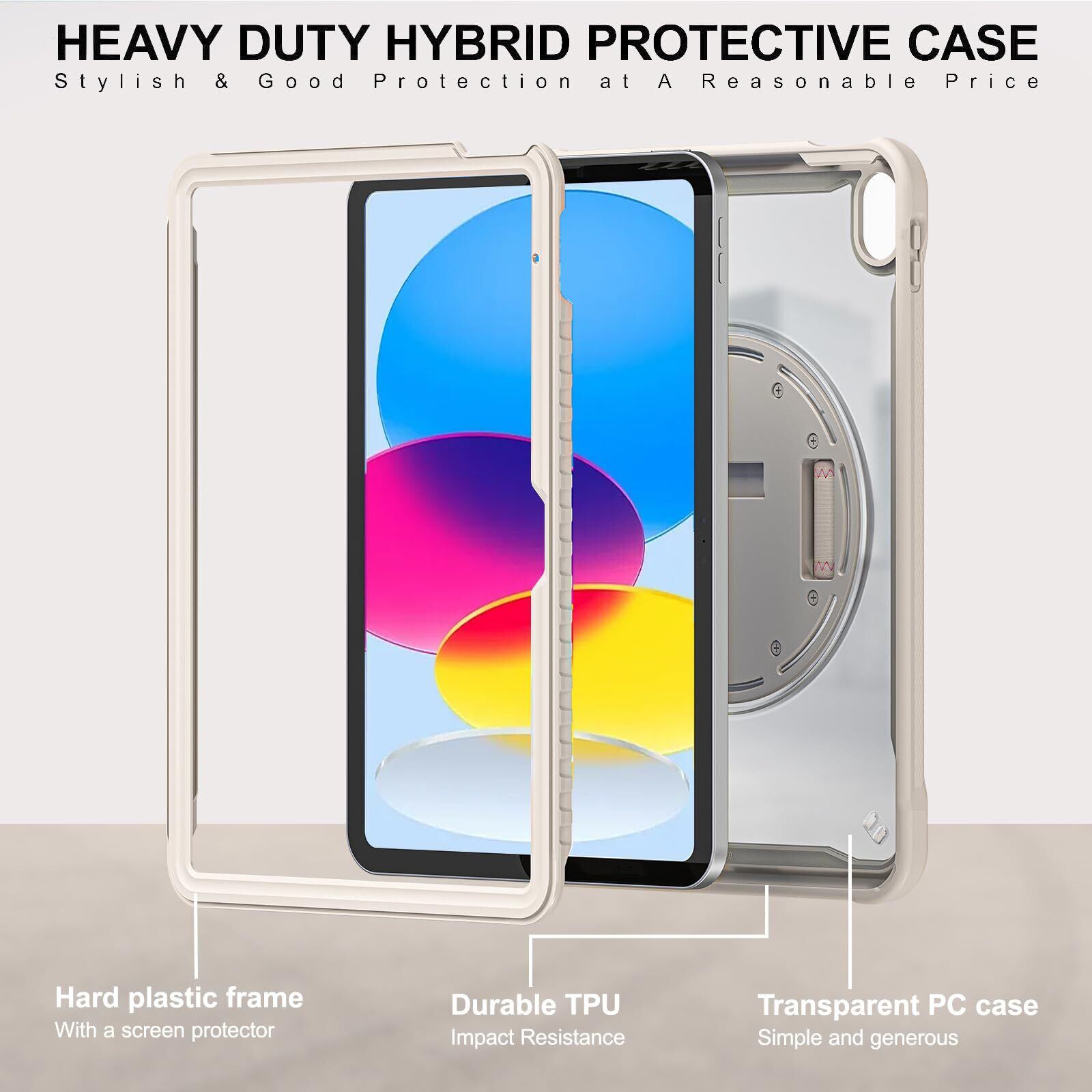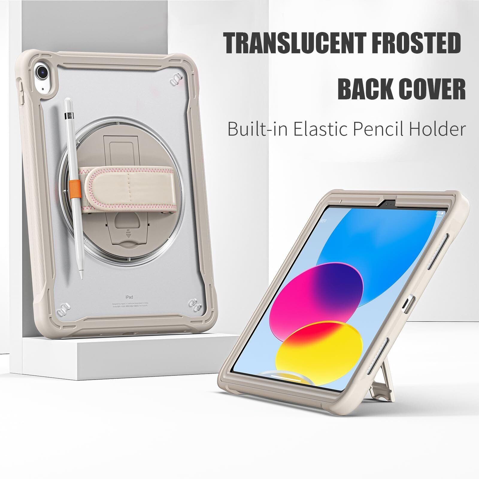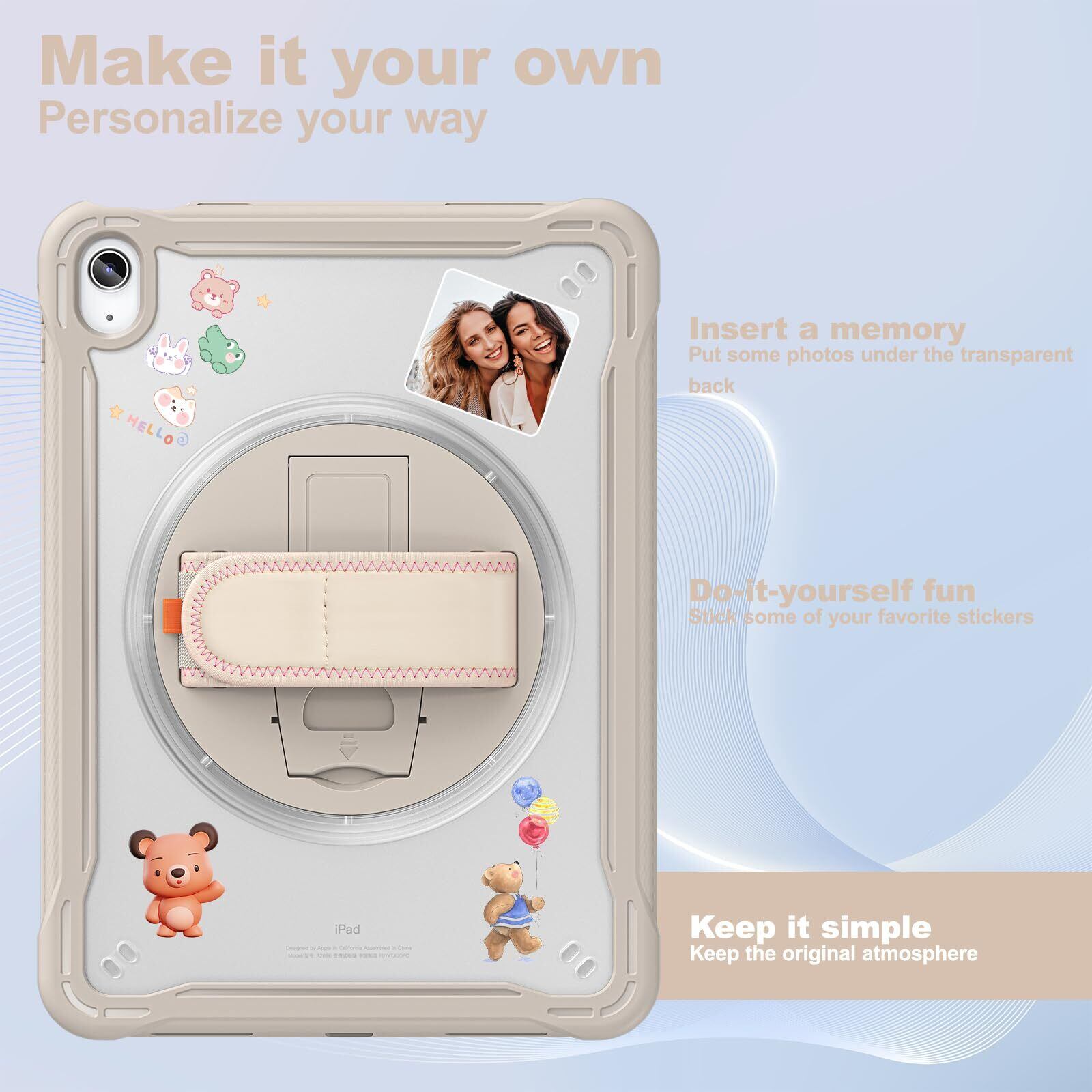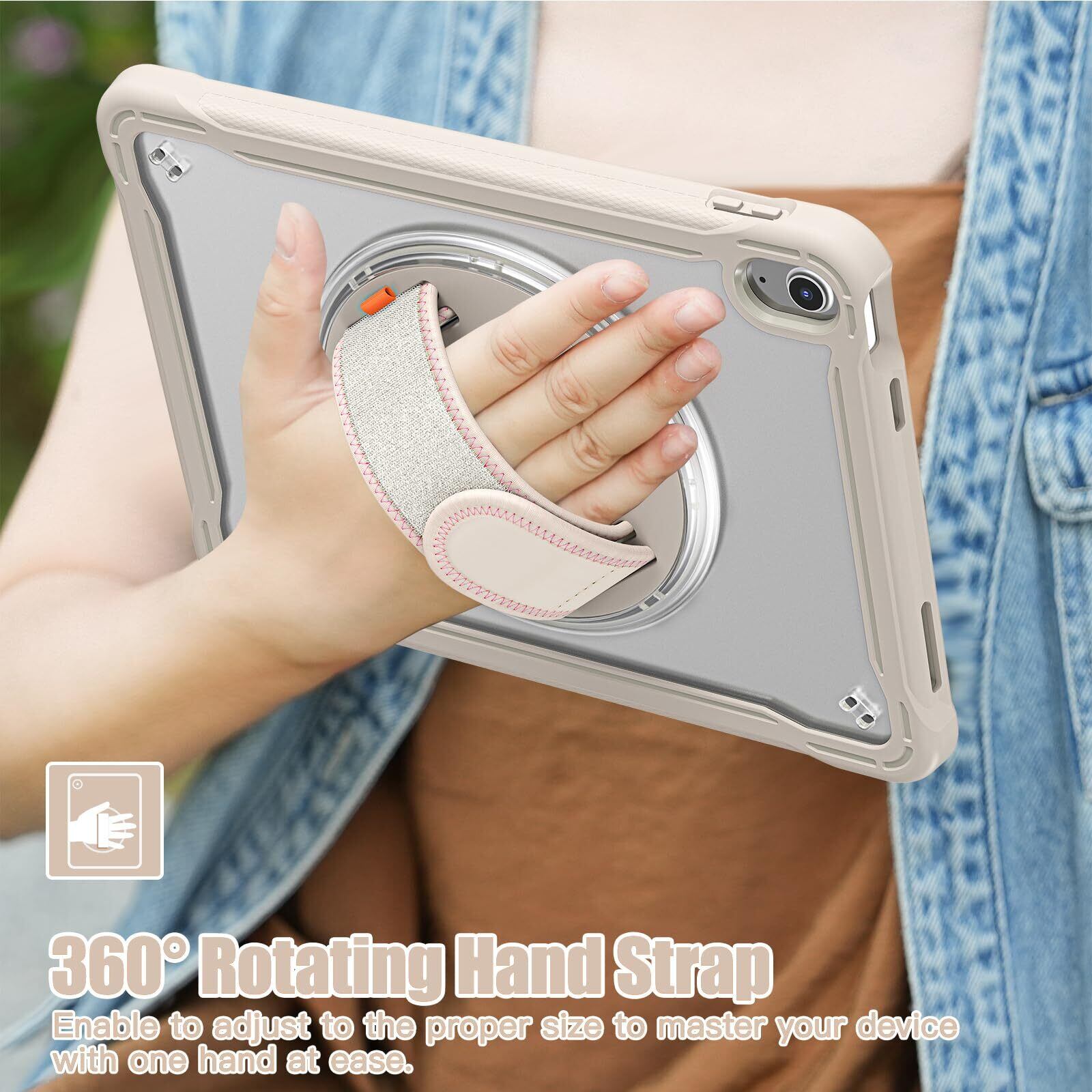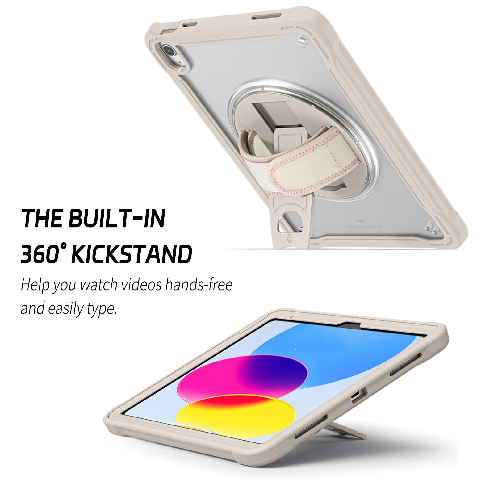 iPad 10世代/11世代 ケース-【スタンドとハンドホルダー】:360度回転&段階調節可能スタンドによって、動画視聴やゲーム、仕事などの作業が楽に行えるようになりました。ハンドホルダーを使用しながら操作する事により、落下の危険を軽減する事が出来ます。