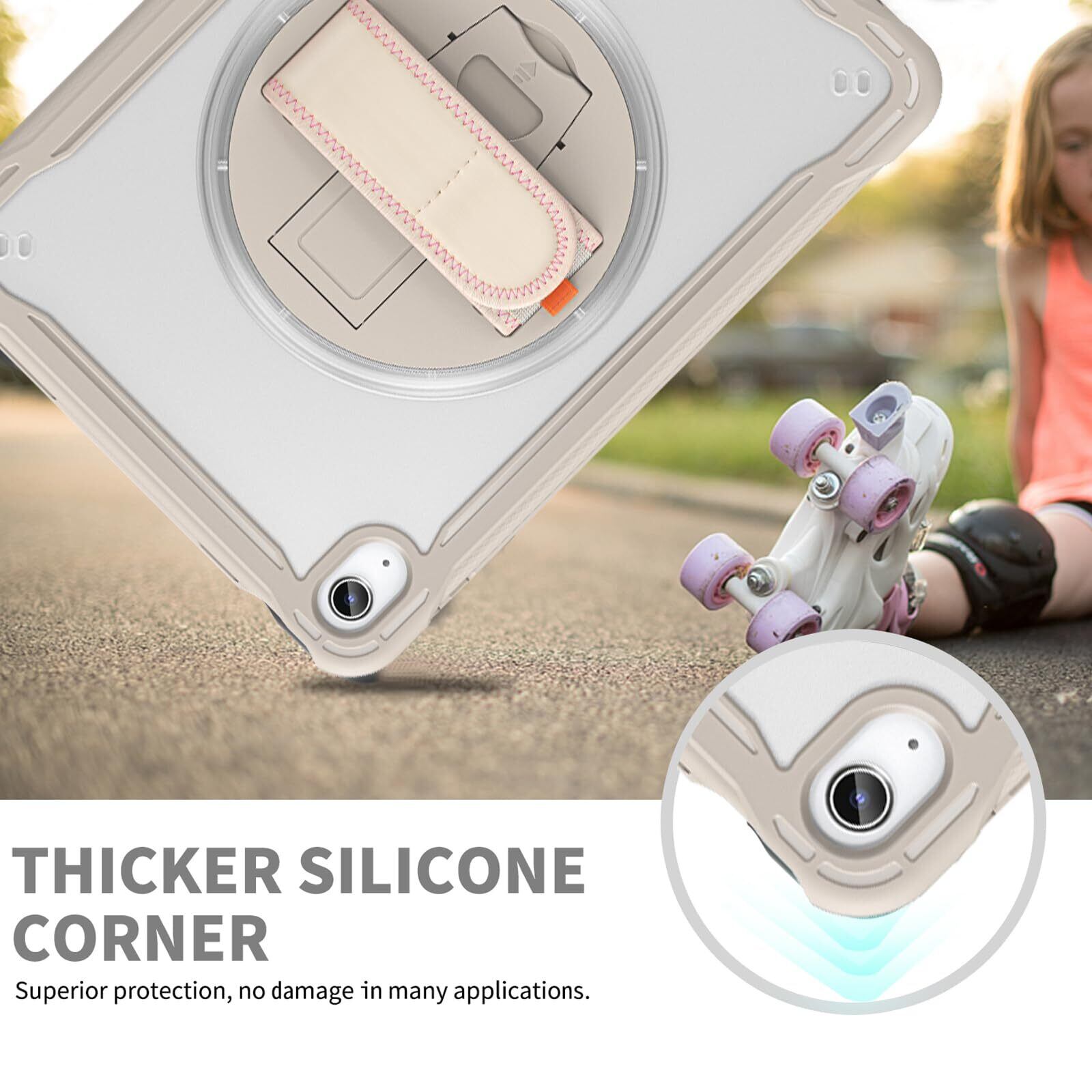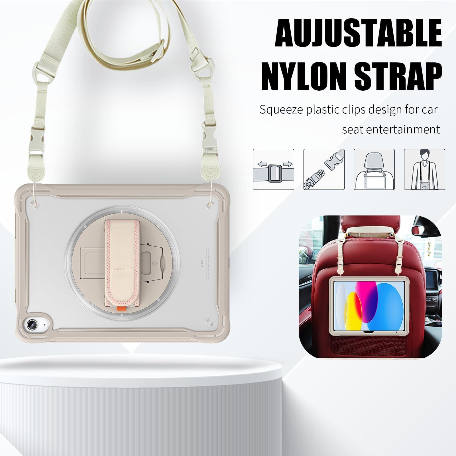 iPad A16 2025 ケース-【幅広いニーズに対応】:ビジネス、アウトドア、学校、家事など様々なシーンで大活躍。子供、キッズがいる家庭にもおすすめ。首に掛けて写真を撮ったりしたり、ストラップを車のヘッドレストに取り付けて後部座席のエンターテイメント用としても使用する事も可能です。