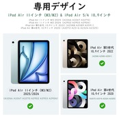 「対応機種」2025年発売のiPad Air 11インチ(M3)(モデル番号:A3266、A3267、A3270)、2024年発売のiPad Air 11インチ(M2)(モデル番号:A2902、A2903、A2904)、2022年発売のiPad Air 5(モデル番号:A2591、A2588、A2589)と2020年発売のiPad Air 4(モデル番号:A2316、A2324、A2325、A2072)に適用します。iPad(A16)第11世代 11インチ、iPad 第10世代 10.9インチ、iPad Air 13インチ、又は他のモデルには適用しません。ご購入前に、機種・モデル番号をご確認ください。ご注意:モデル番号の確認は端末本体の背面カバーにチェックしてください。