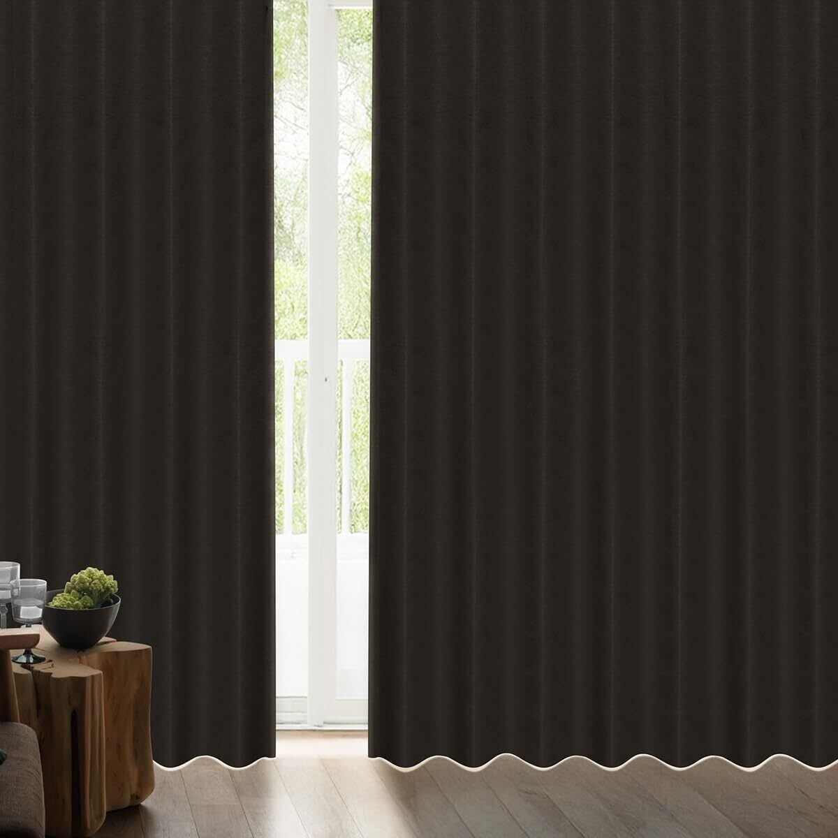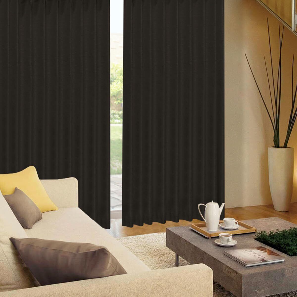 サイズ:(幅)100×(丈)200cm×2枚入 色:ブラックブラウン ※色により光の吸収率が異なる為、同じ完全遮光生地使用カーテンであっても明るさに違いがございます。