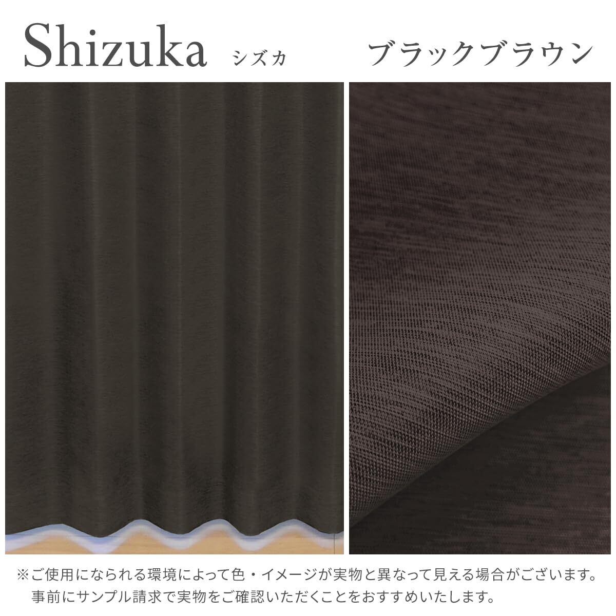 [カーテンくれない] 断熱・遮熱カーテン「静 Shizuka」完全遮光生地使用【形状記憶加工】遮音 防音効果で生活音を軽減 高断熱 静 遮光1級 全13色 色: ブラックブラウン サイズ:(幅)100cm×(丈)200cm×2枚入 / Bフック/タッセル付き
