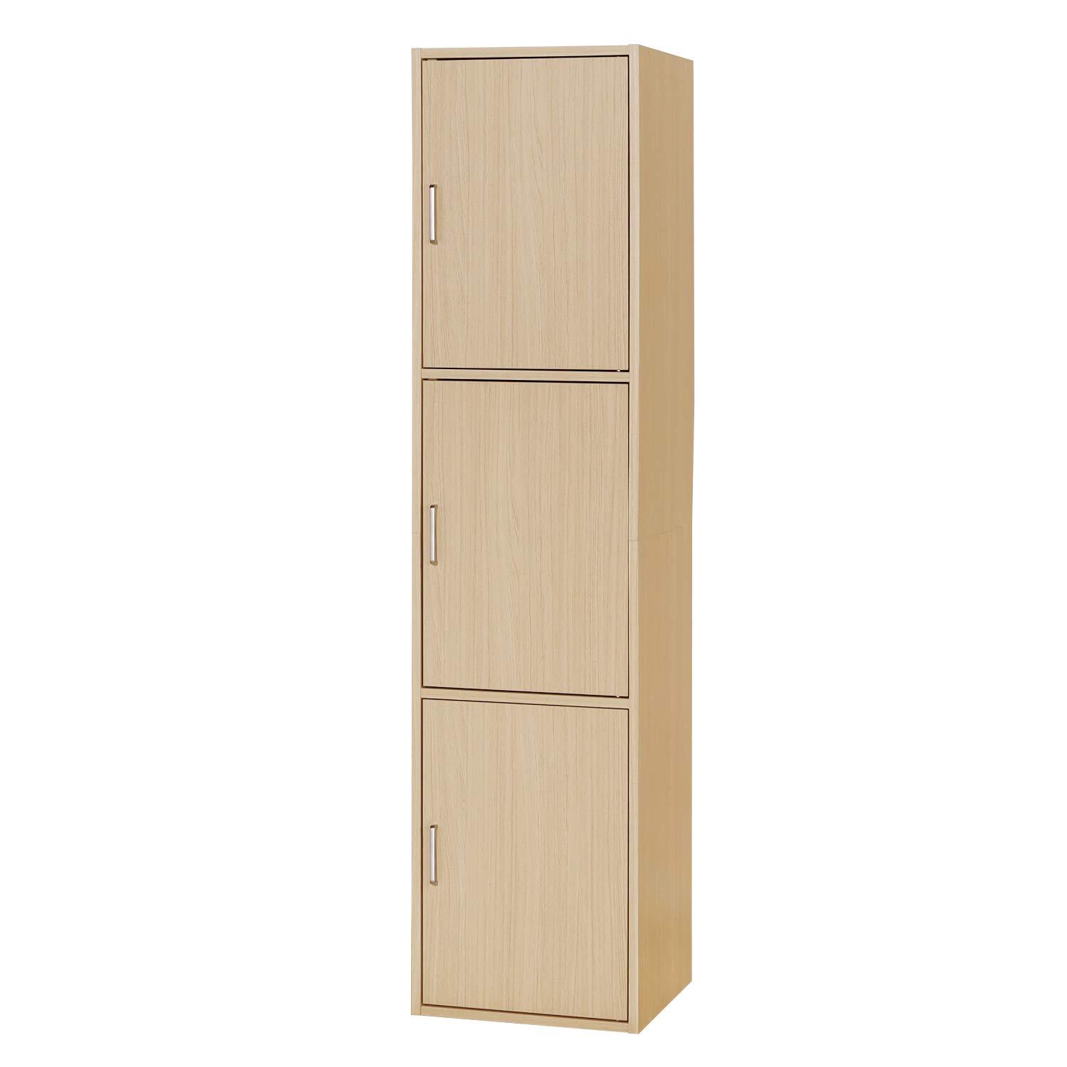 白井産業 収納棚 ラック 整理棚 3段の扉付き収納 同シリーズで組み合わせ自由自在 一人暮らしの部屋や狭いスペースにぴったりサイズ ナチュラルブラウン木目柄 ベーシックデザイン 幅43×奥行39.3×高さ179.7cm FUL-18453DNA フルニコ