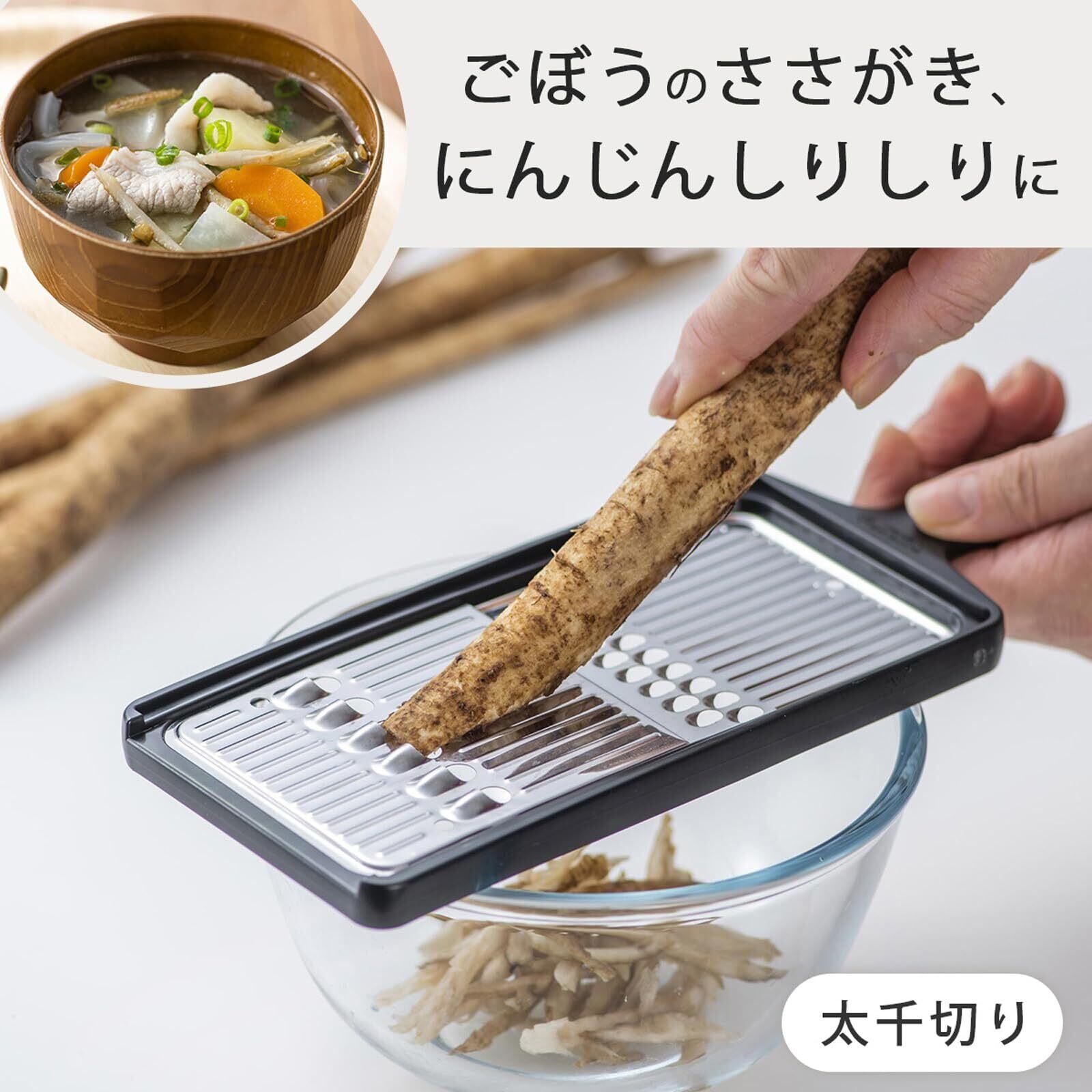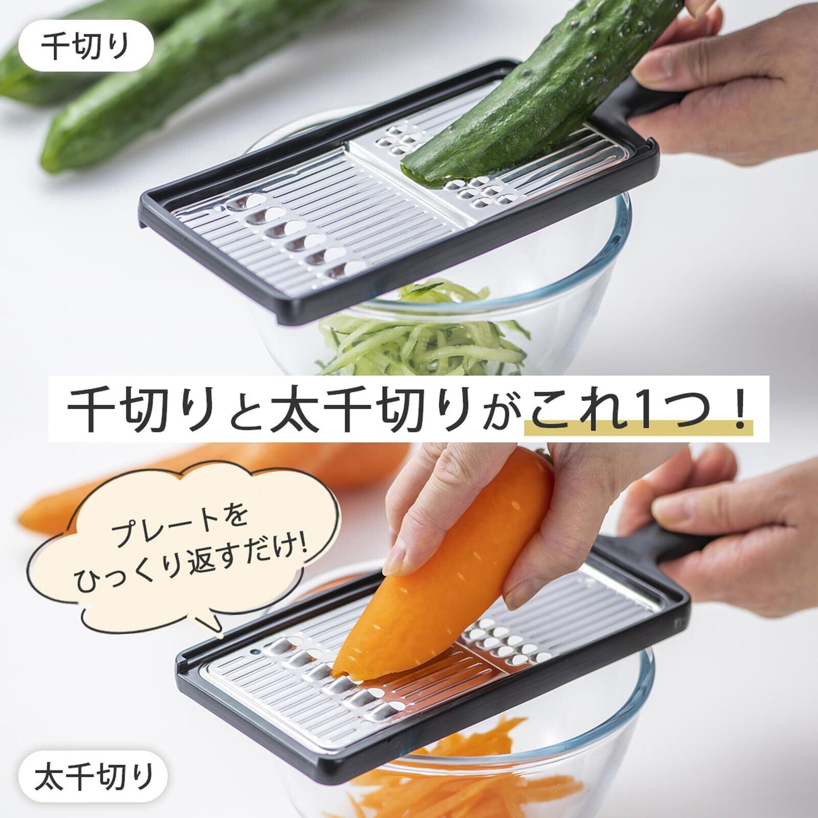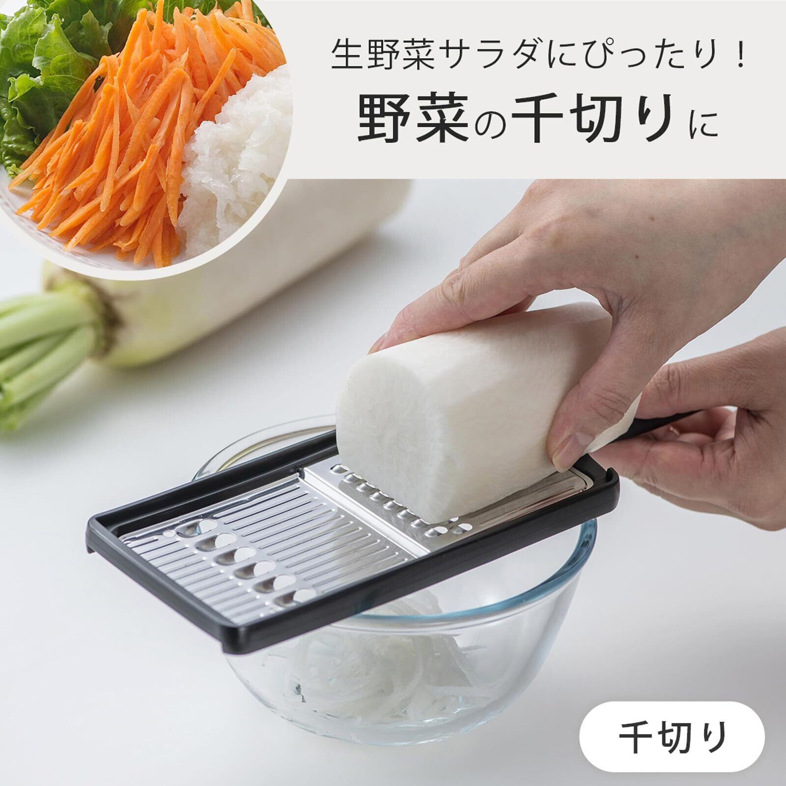 下村企販 スライサー 千切り しりしり 【日本製】 2way 両面で使い分け 時短 下ごしらえ 大根 きゅうり にんじん 野菜カッター ブラック 和食屋さん 燕三条 45945