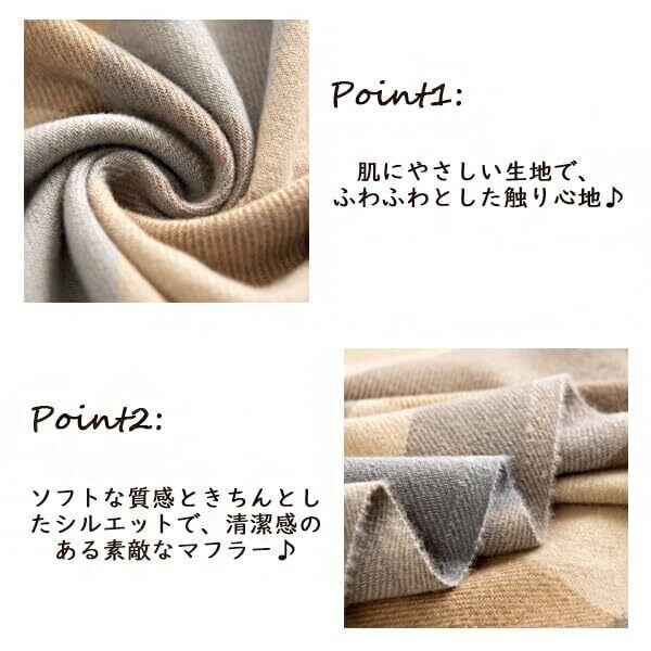 さまざまなシーンで大活躍:春、秋、冬はもちろん、通勤、通学、ショッピング、デートにも、このマフラーを巻くと暖かくておしゃれです。夏のオフィスでは、冷房対策に大判だから体をふわっと覆えてとても暖かく快適です