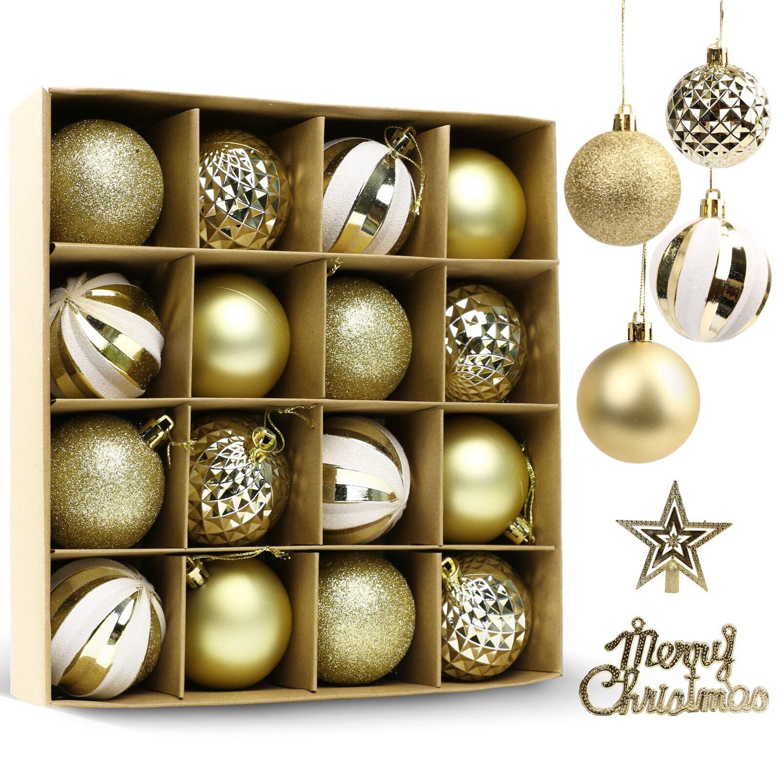 BOLYDOOM クリスマスボール オーナメント 3-6cm豪華なボールセット クリスマス ツリー 飾り 多種類含む 人気 装飾 Merry Christmas プレゼント おしゃれ ゴージャス 部屋 喫茶店 店舗デコレーション 新年 家庭用 雰囲気作りパーティー装飾 (ゴールド&ホワイト)