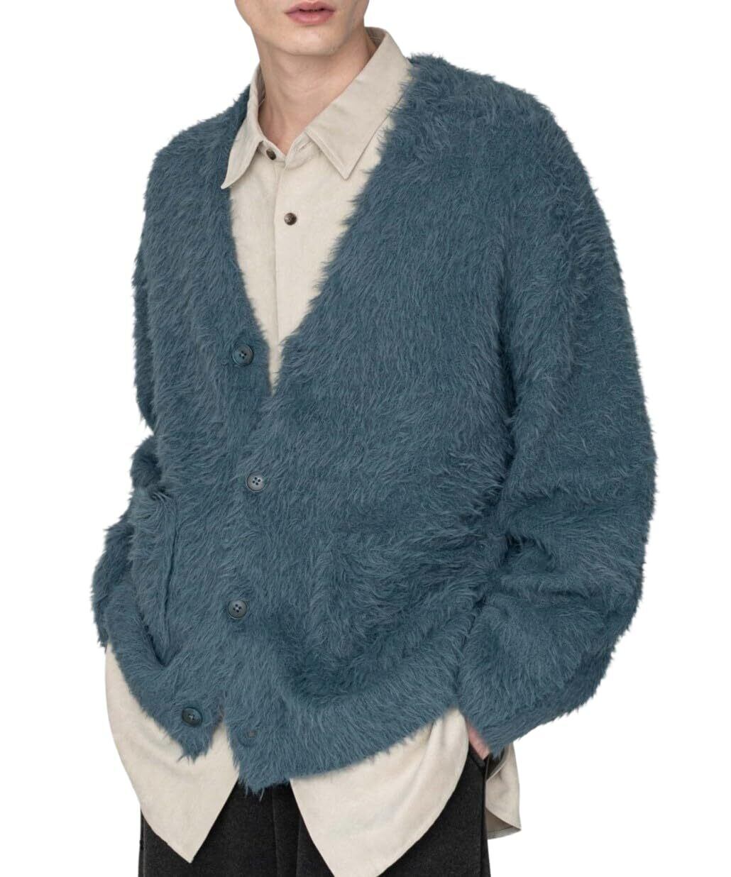 [ウィゴー] 男女兼用 フェザー ニット カーディガン ゆったり アウター 無地 韓国 カジュアル 服 秋服 冬服 ギフト メンズ
