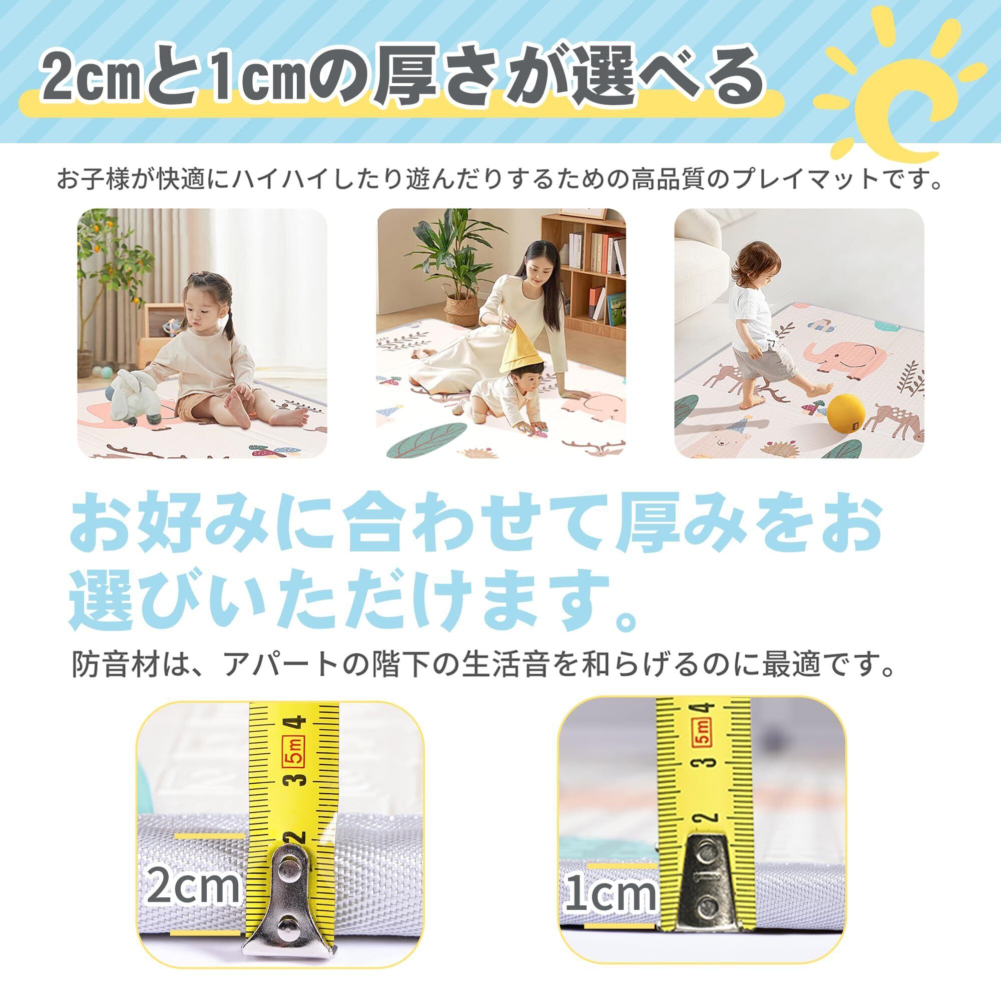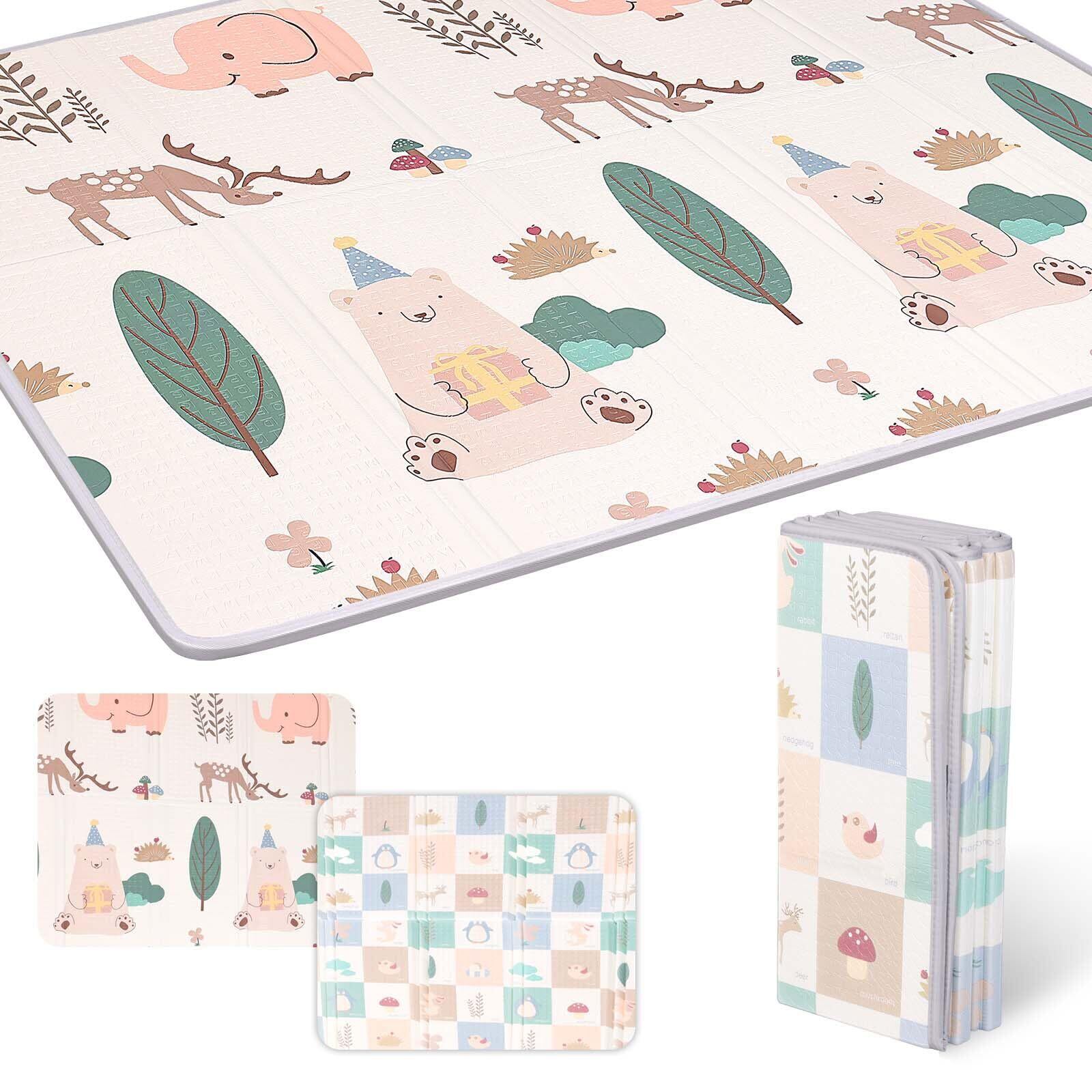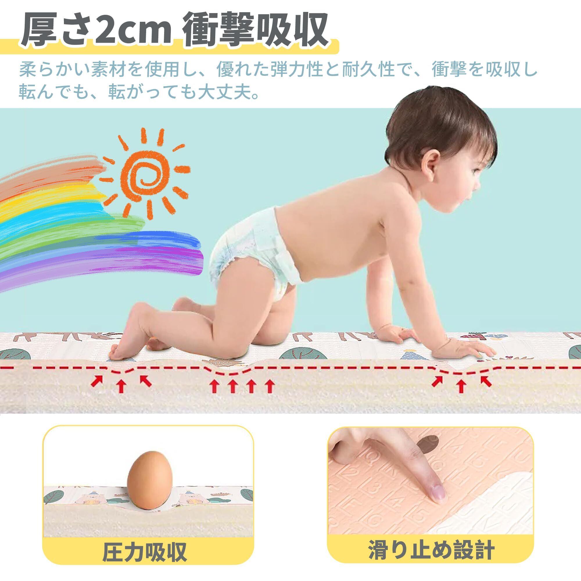 【高い快適性と優れたクッション性】厚さ1cmのXPEフォームスポンジ素材は弾力性と耐圧性に優れ、クッション性も優れており、子供たちに安全な遊び環境を提供できます。 マットの表面は通常柔らかいので、赤ちゃんはその上で這ったり遊んだりするのが非常に快適です。