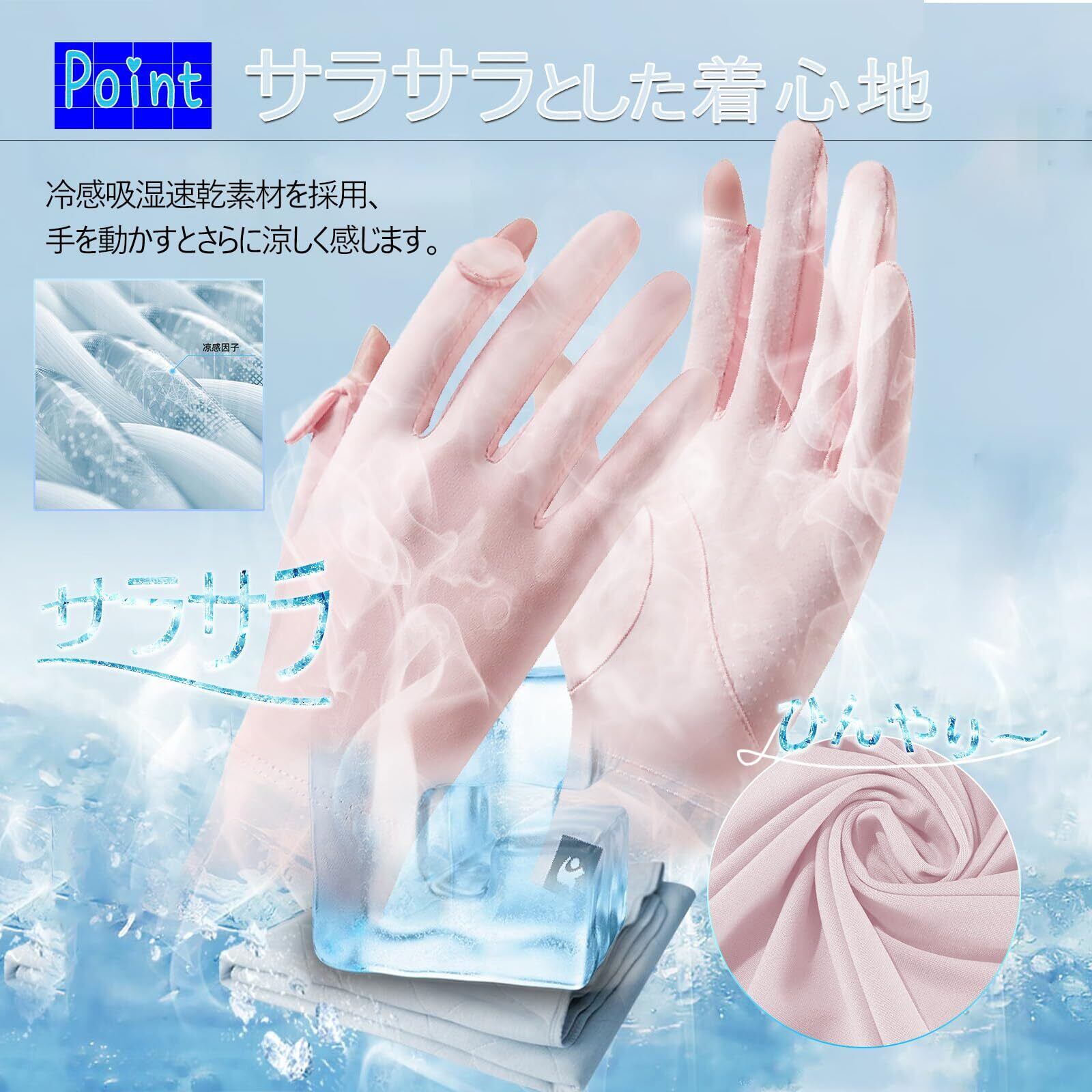 レディース手袋 日焼け止め 涼感手袋 春夏 グローブ 女性日よけ対策 薄い 紫外線遮蔽効果 運転手袋 滑り止め加工 通気性 触り心地はすべすべ UVカット スマホタッチ可能 指空き 吸汗速乾