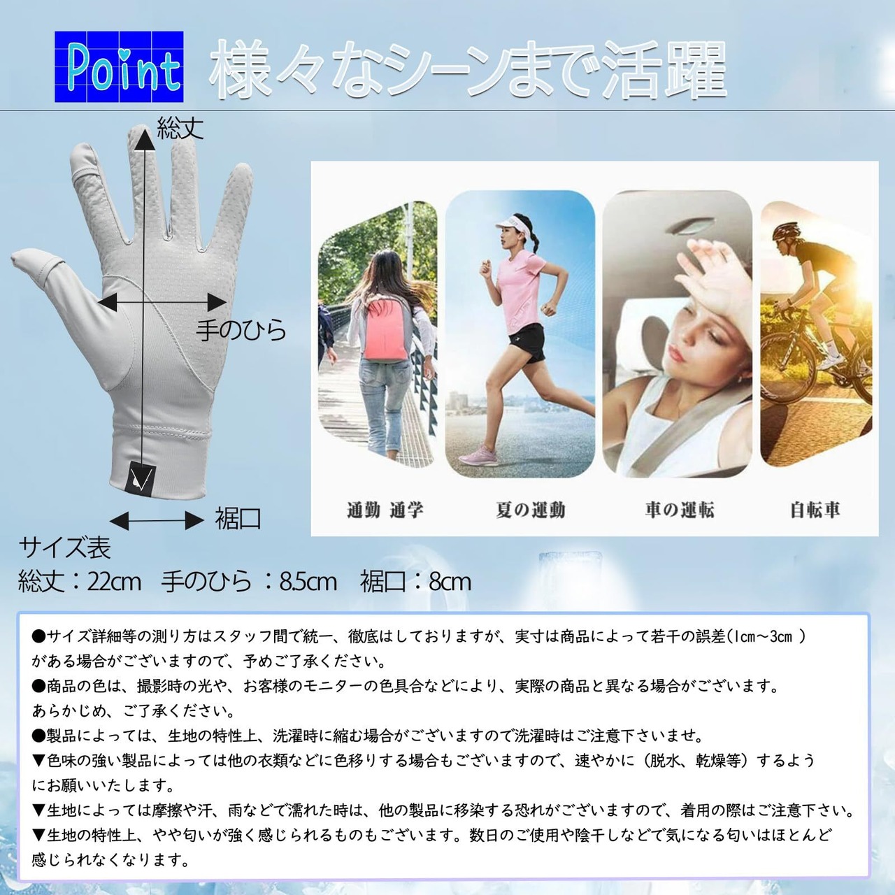 【心地よさと機能性を兼ね備えた、レディース涼感手袋!】この手袋は、春夏の紫外線対策にピッタリのアイテムです。薄手でありながら、優れた紫外線遮蔽効果を持ち、運転時やお出かけ時に安心してお使いいただけます。