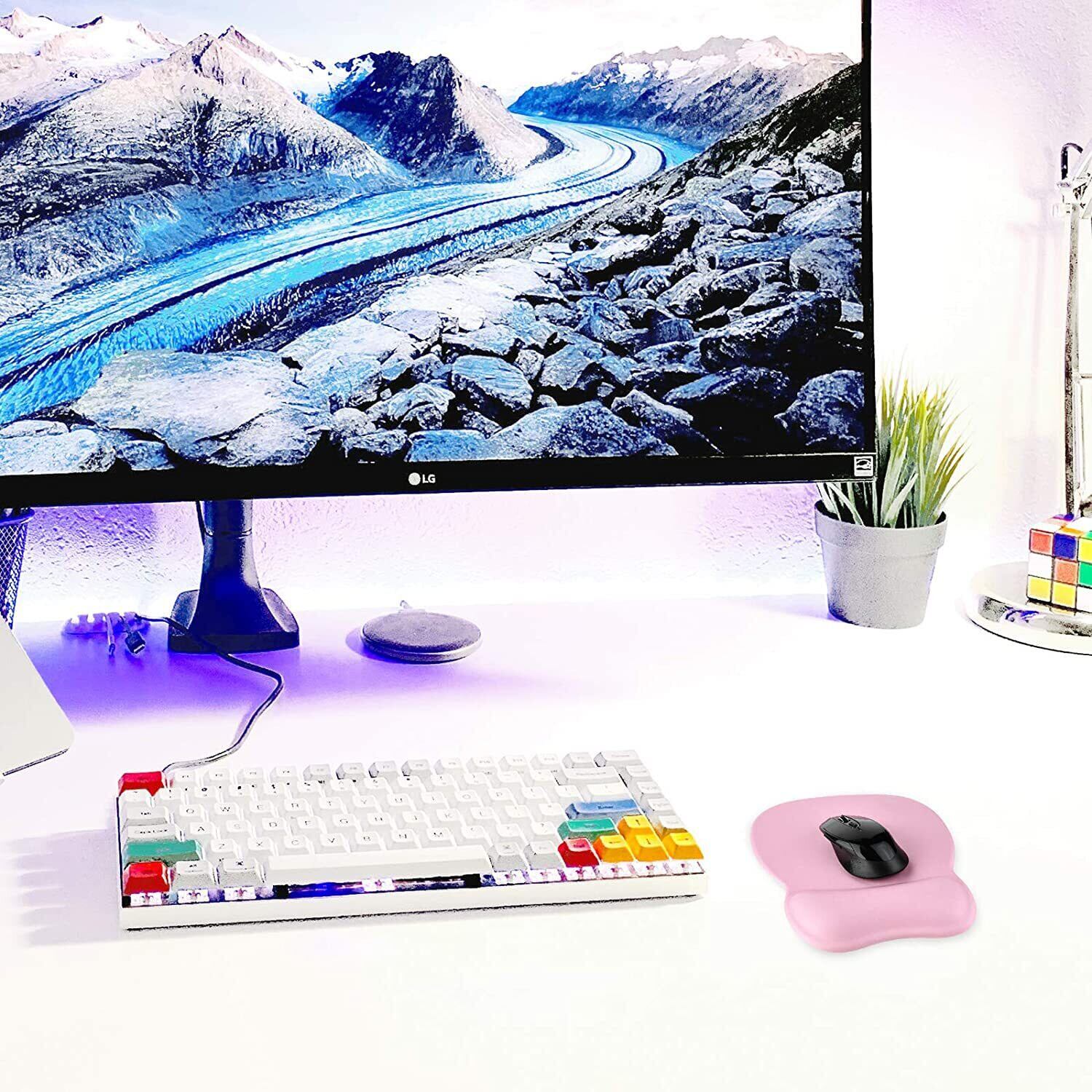 EooCoo マウスパッド 手首サポート付き人間工学に基づいたゲーミングマウスマット リストレストマウス 疲労を軽減 低反発快適でソフトシリコンベース滑りにくい 無臭 洗える 汚れにくく耐久性 可爱、デスクトップ、自宅、ノートPC、やオフィス、ノートパソコン、旅行、インターネットカフェ用 - ピンク