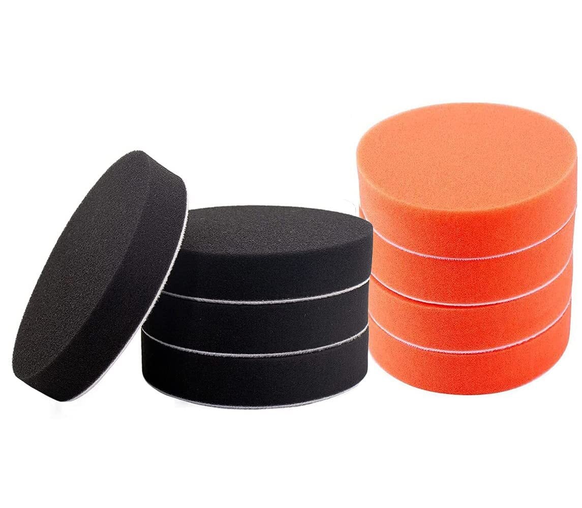 【人気商品】スポンジバフ 洗車 125mm 電動ポリッシャー用 研磨スポンジ ウレタンバフ 車磨き用 ワックスがけ スポンジバフ 研磨バフ ポリッシャーバフ 平型スポンジ マジックテープ式 8個セット (ブラック+オレンジ)