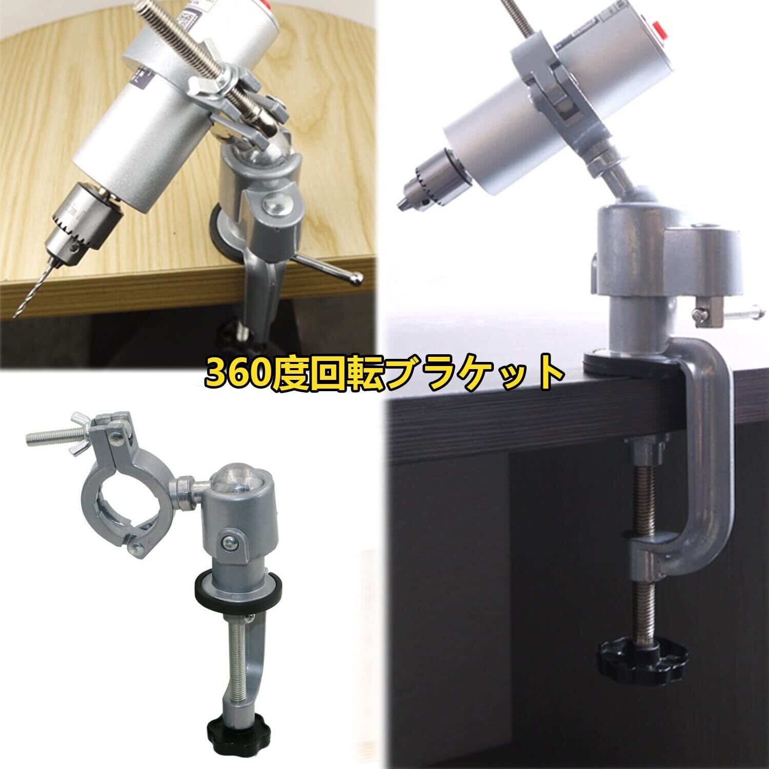 【ヘッド部は360度回転可能であり】 電動ドリルスタンドホルダーのヘッドは360°回転するため、底部を固定しながら柔軟に方向を回転させることができ、縦にも使えます、軽量で便利で、作業効率が大幅に向上します。