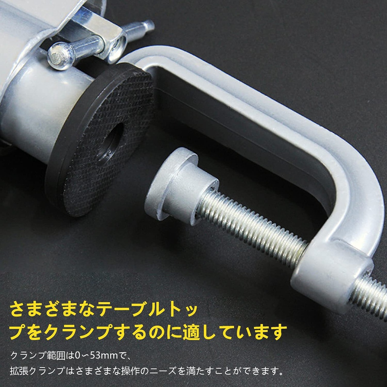 【複数のツールに適しています】電動ドリルブラケットのクランプ範囲は35〜43mmで、デスクトップの固定厚さは0〜53mm、電動グラインダー、電動ドリル、ハンドプレーナー、その他の工具に適しています。