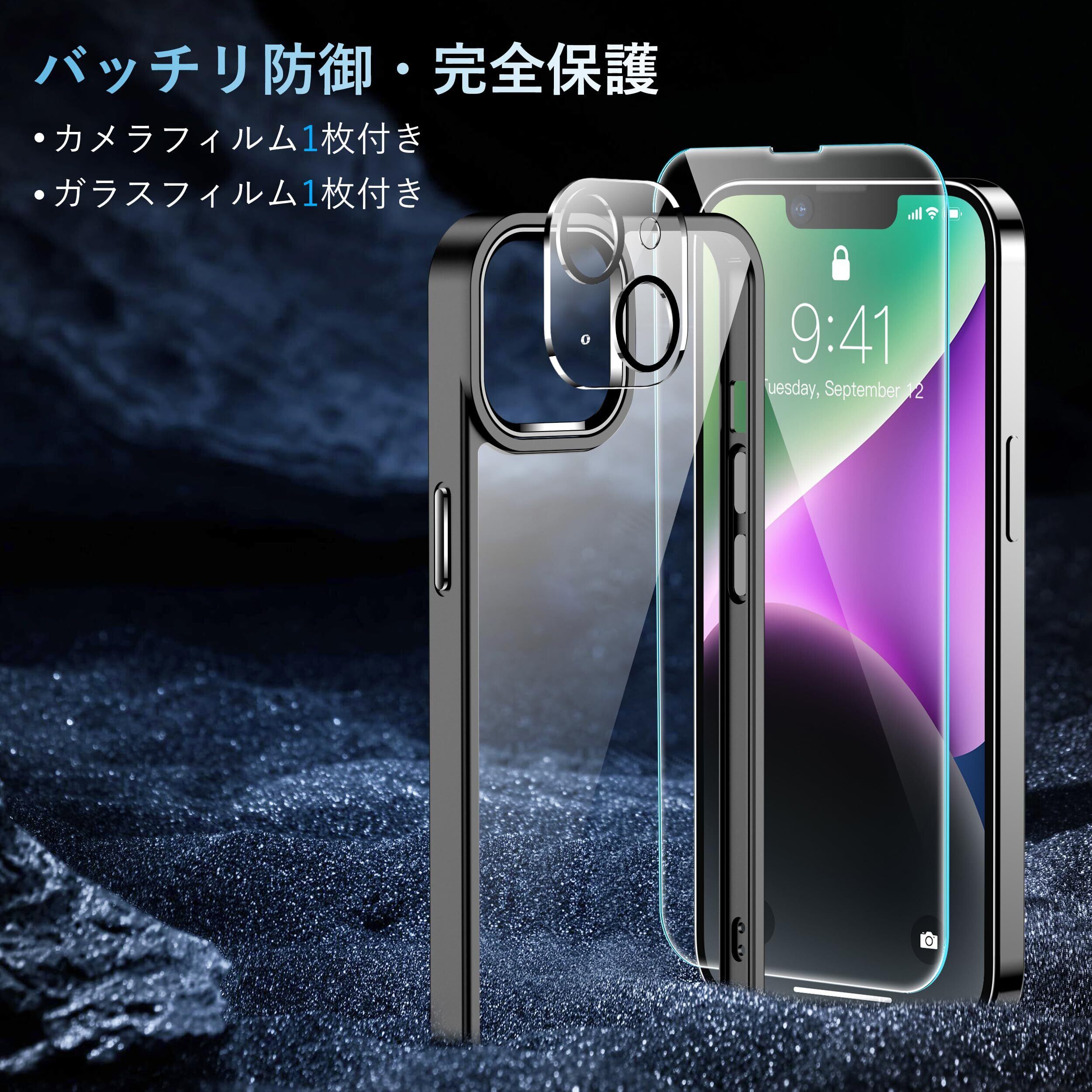 【新着商品】iPhone14 ケース ブラック カメラレンズ保護付き 耐衝撃 黄ばみ防止 アイフォン14ケース 米軍MIL規格 耐久性 SGS認証 アイホン14 スマホケース ワイヤレス充電対応 あいふぉん14 カバー 6.1インチ