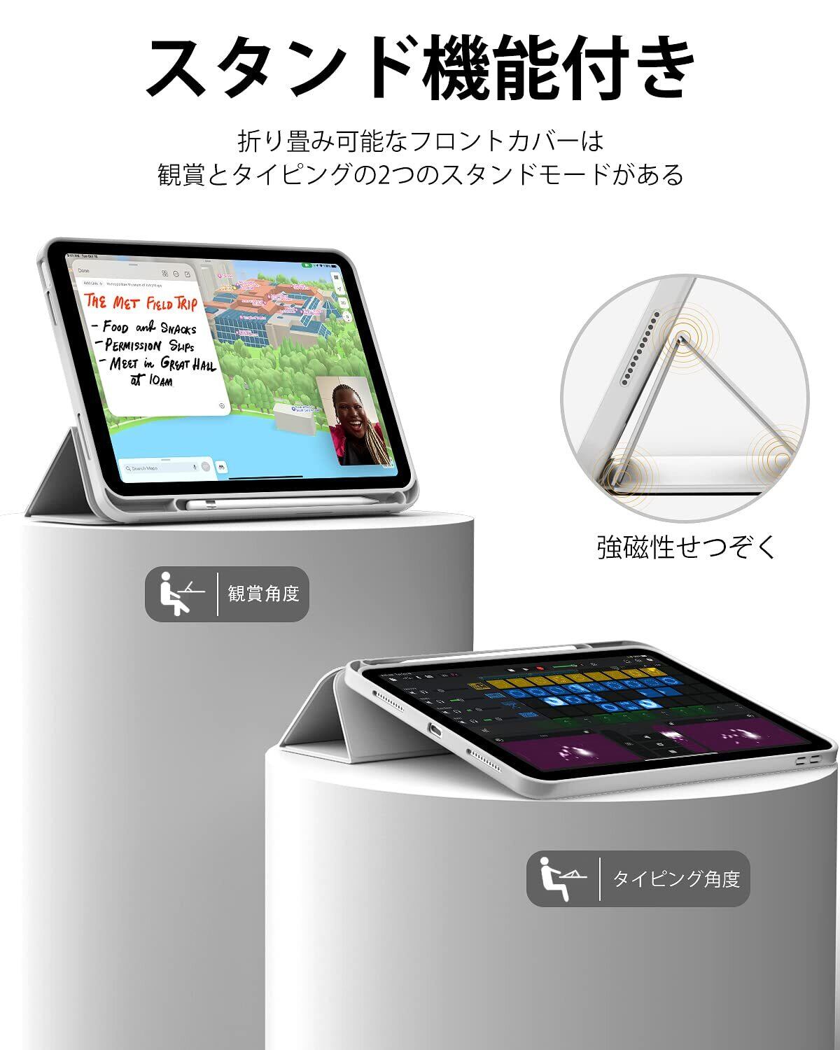 【対応機種】 iPad 11世代 (A16) 11インチ 2025、iPad 第10世代 10.9インチ 2022(モデル番号:A2696/A2757/A2777) 専用スマートケース。(ご注意:iPadの他のモデルには対応していません、ご注文の際に、 お手元機種の背面にあるモデル番号を確認をお願い致します。)
